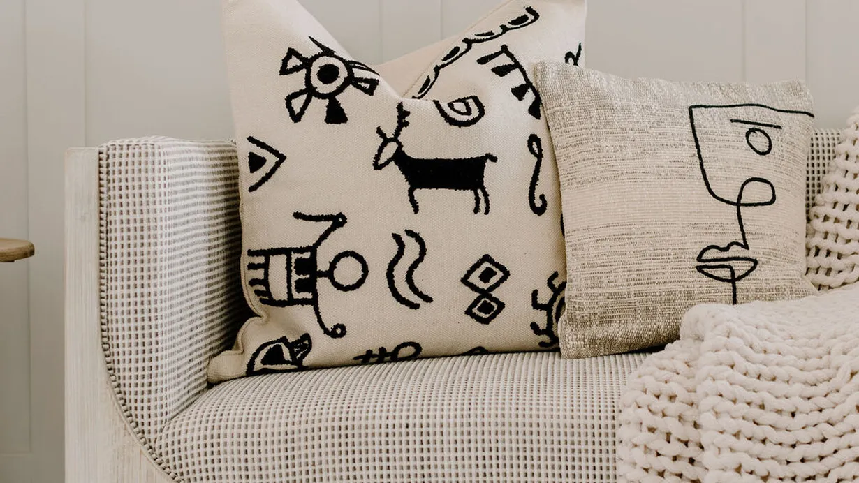 Pattern and texture give this neutral toned bedroom a snuggly and organic feel