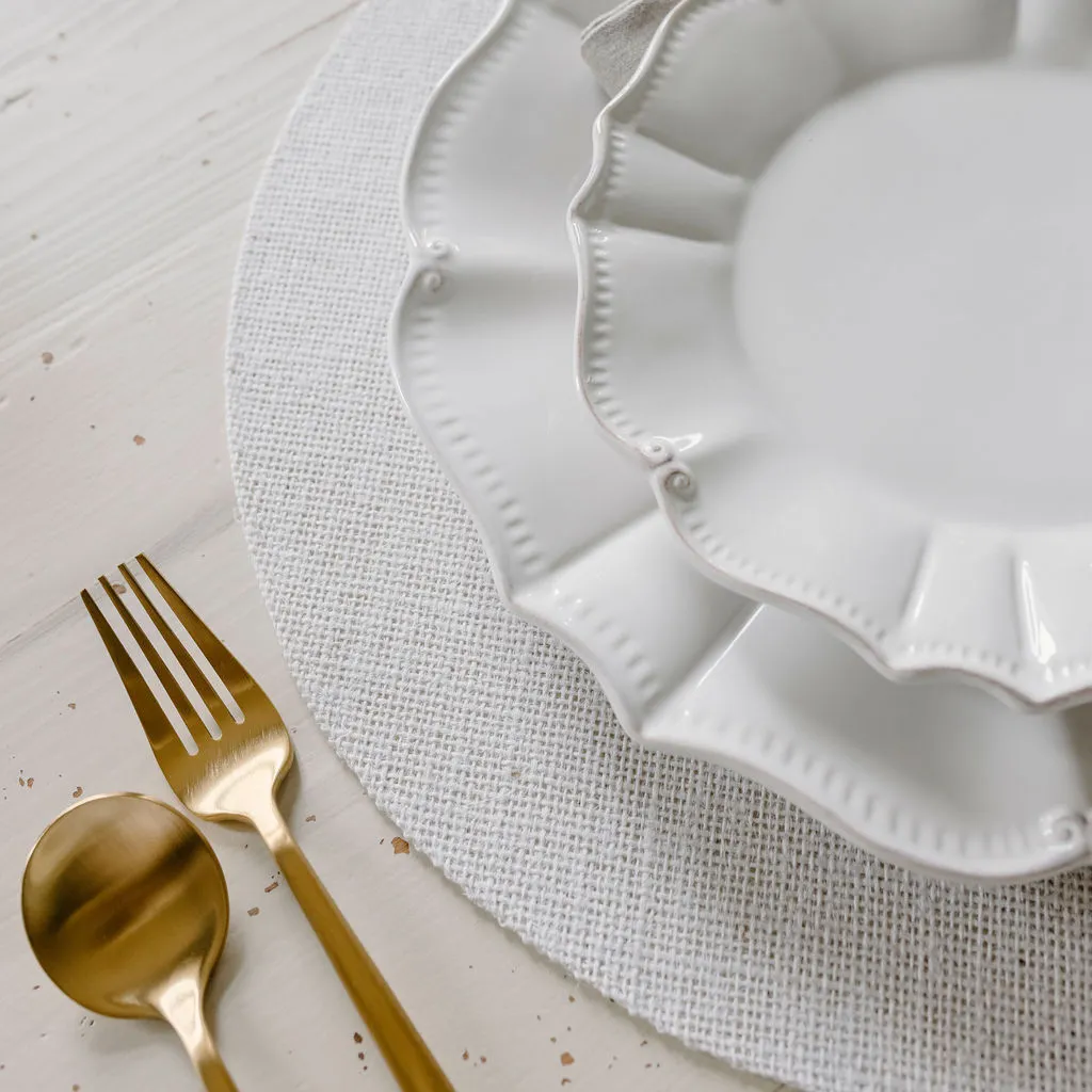 Gorgeous round placemats to add an elegant touch to everyday dining or add glassware, candles and foliage for dinner party chic in an instant