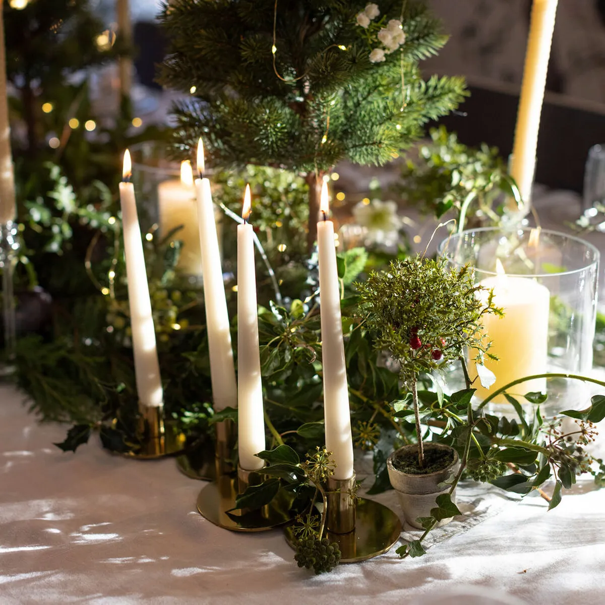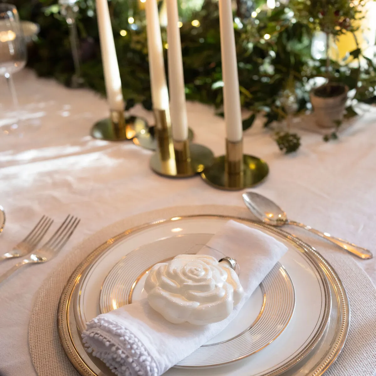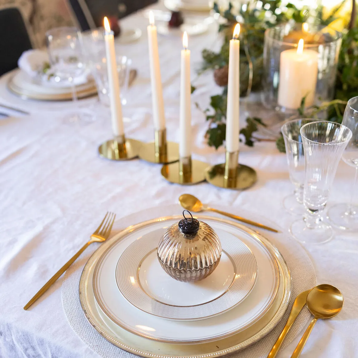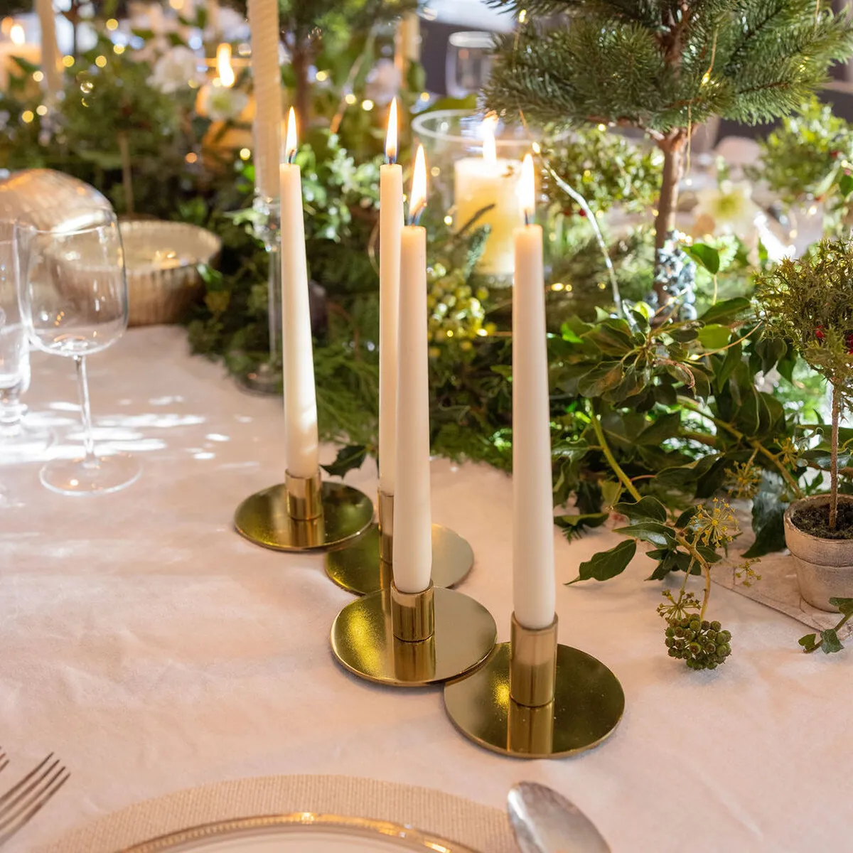 We love this gold candlestick not only for its undoubtedly glamourous vibe but also because it's a modern take on a candlearbra, holding 4 dinner candles. They work perfectly on their own or style effortlessly with greenery