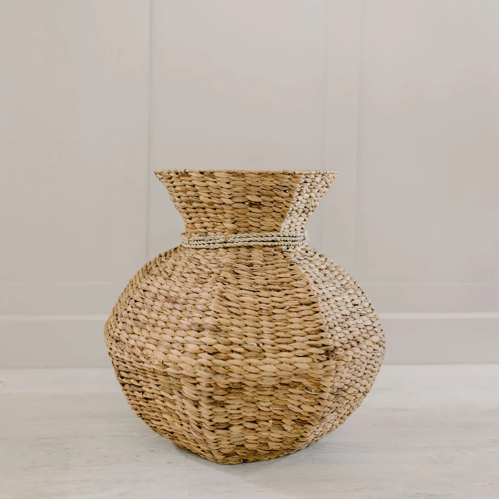 This gorgeous, woven planter or vase adds texture and sculptural looks to your scheme. With a narrower neck, it can be used for faux or dry stems as well as faux plants to give a relaxed, modern, earthy or scandi vibe