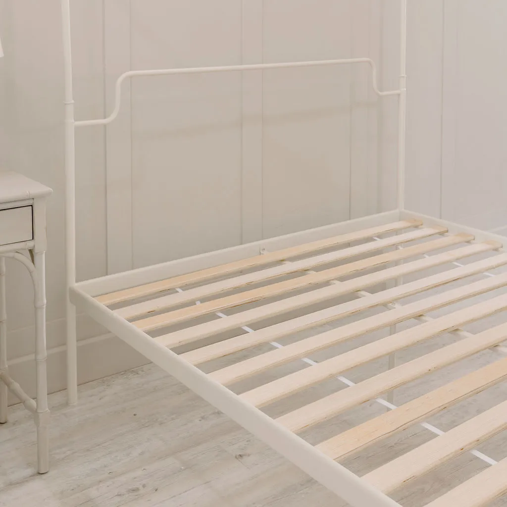 Give your bedroom a boutique hotel look with this gorgeous canopy bed. With a clever modern take on an old design, this bed will be a stunning focal point of your room but without compromising on space! No need for drapes either!