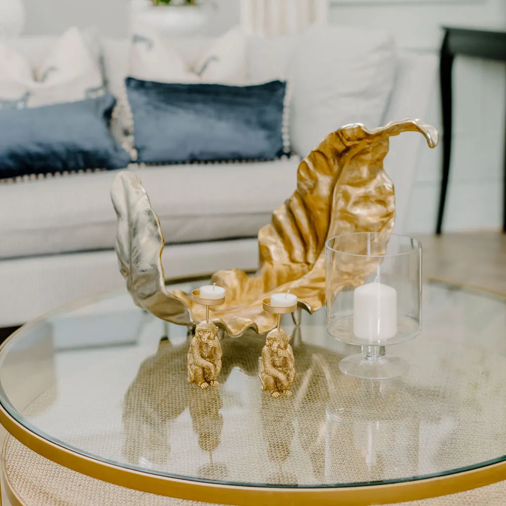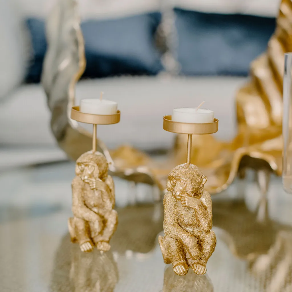 This small gold candle holder in the form of a cheeky little monkey will add an individual and humorous touch to your interiors. Ideal for tealights and small column candles, we love it styled in multiples on tables or on narrow mantle shelves. Try it with colour popping candles or scented tealights!
