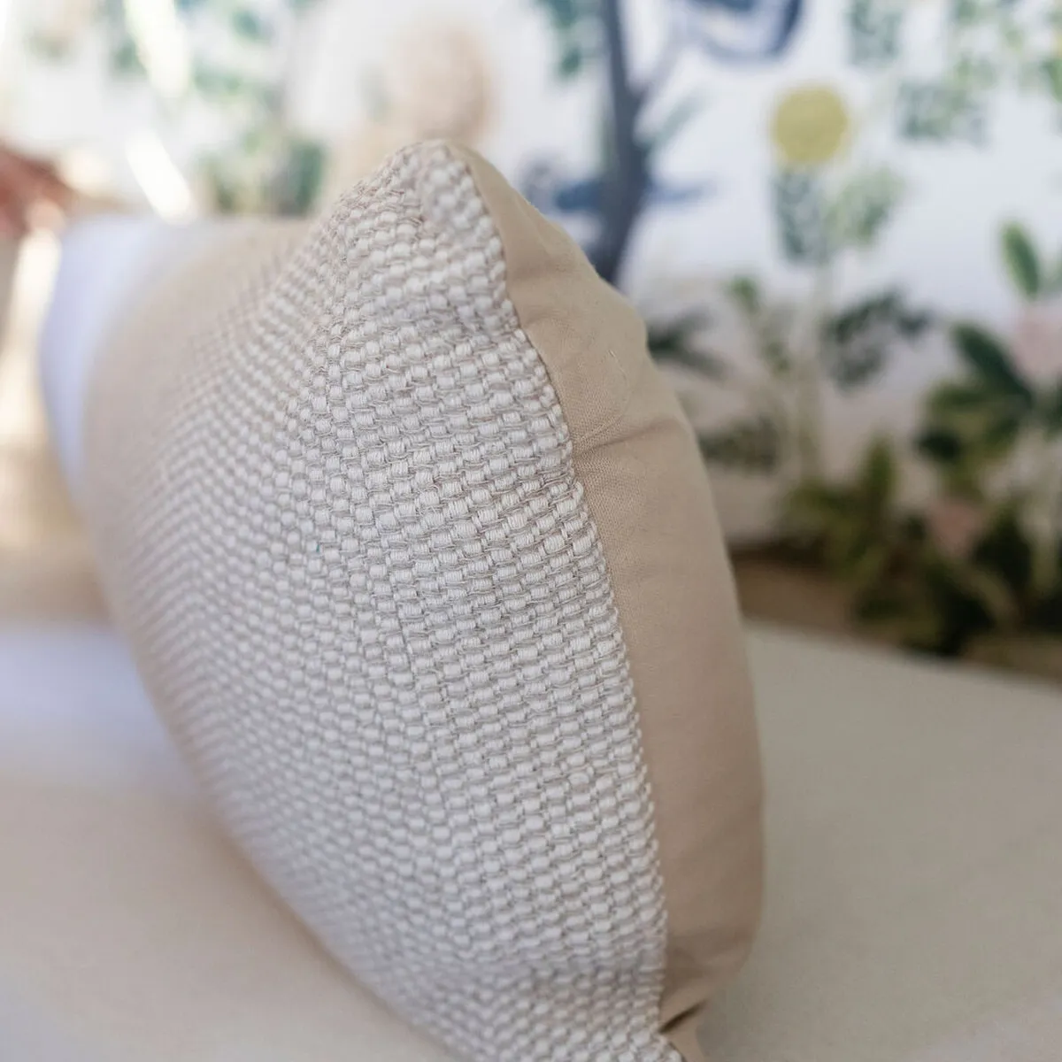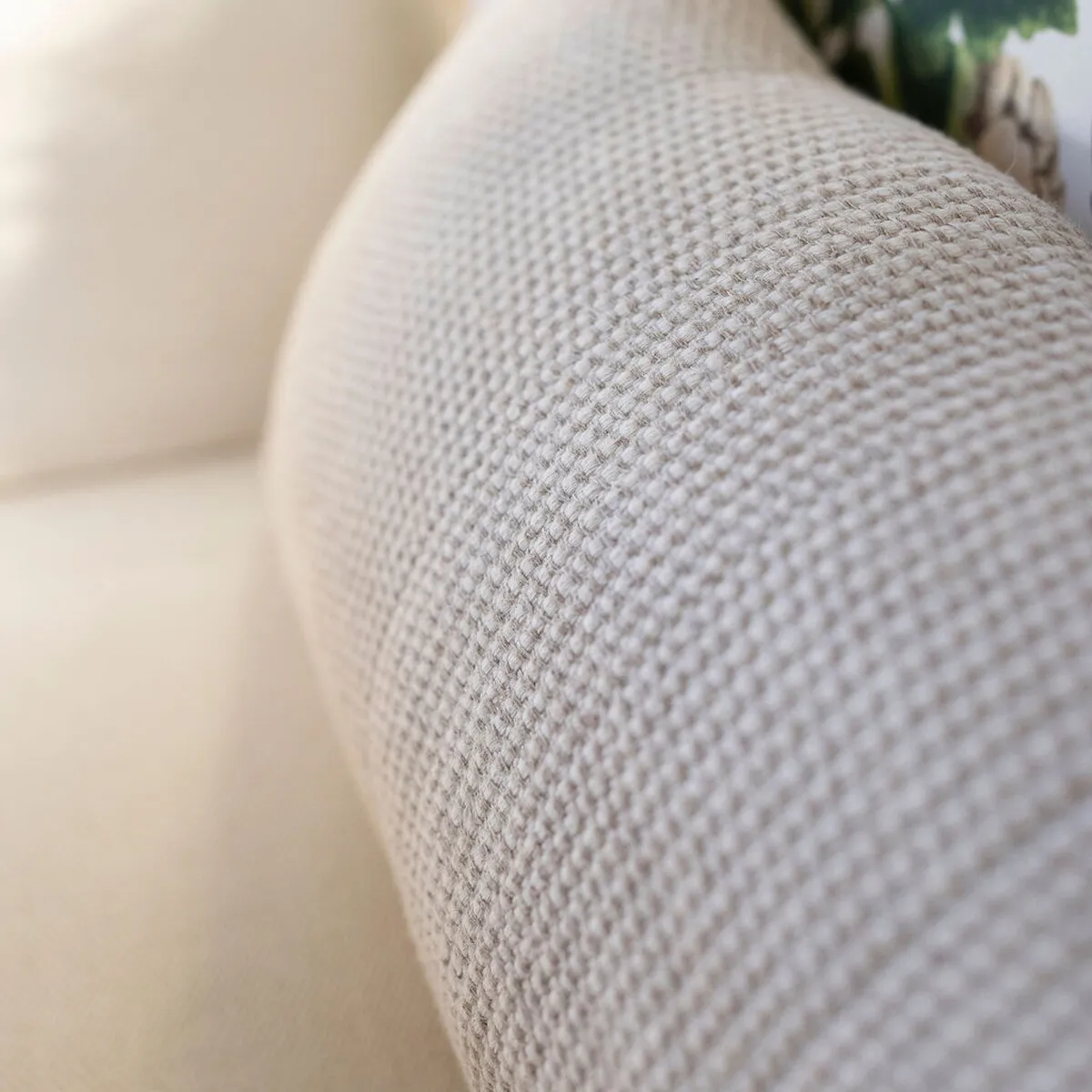 Soften and add texture to your scheme with our gorgeous Clara linen and cotton cushion. It's extra long so it acts as the perfect bolster on your sofa, bench, love seat or bed. With woven threads in soft taupe and cream, it's the perfect neutral cushion to uplift your furniture and other textiles.