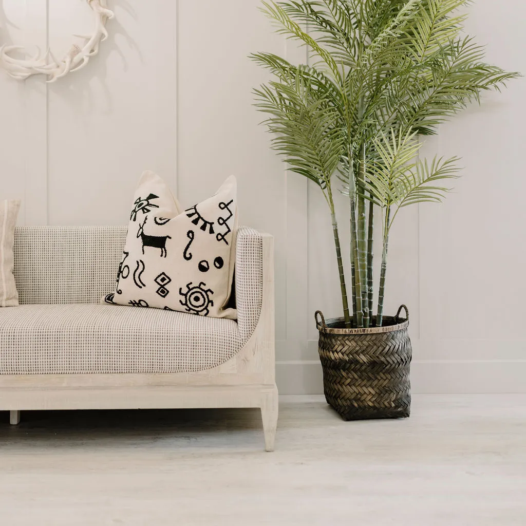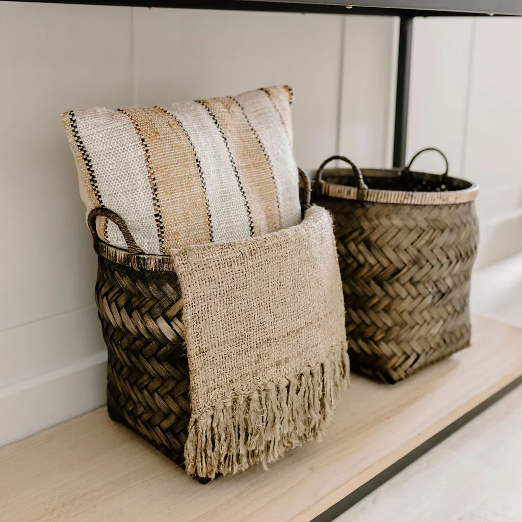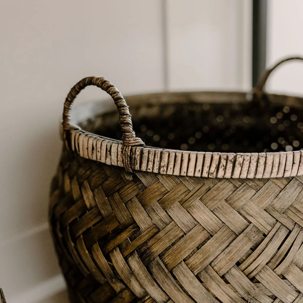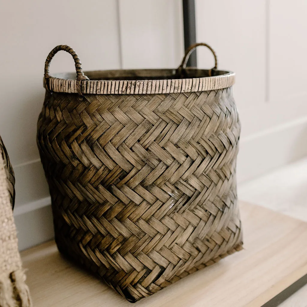 Another versatile piece, this beuatiful distressed finish bamboo basket is perfect for hiding clutter, storing lightweight items, giving a uniform appearance to a console and as a planter for faux plants