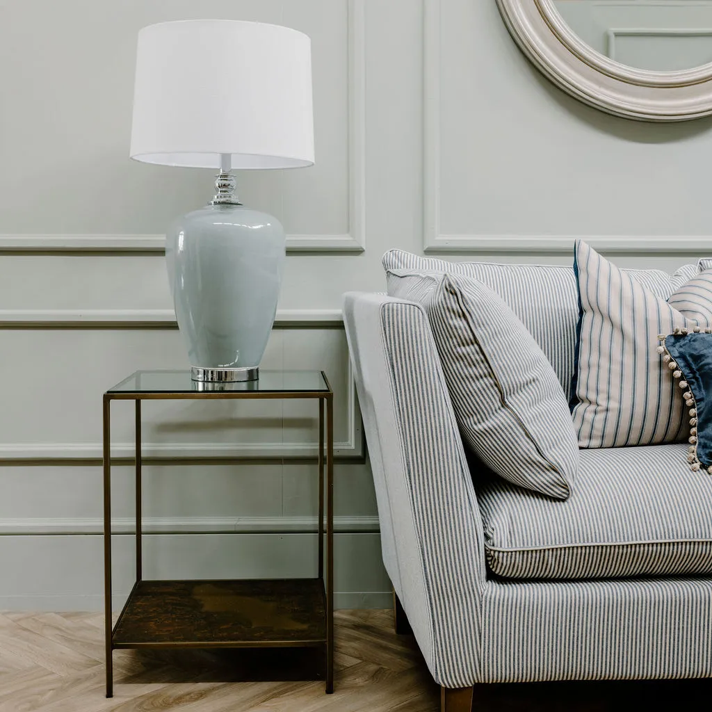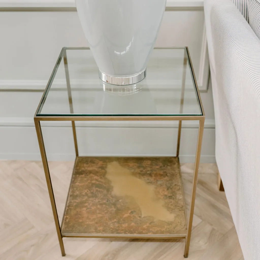 This square, glass topped side table with gilded sides is a firm favourite here at Stylish Home and we guarantee one which will become an heirloom piece in your own home. It's beautiful, elegant lines make it perfect as an end table to a sofa, styled with a stylish lamp pretty blooms or as exquisite bedside tables.