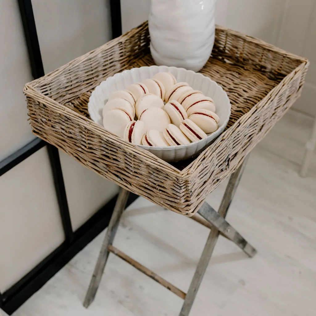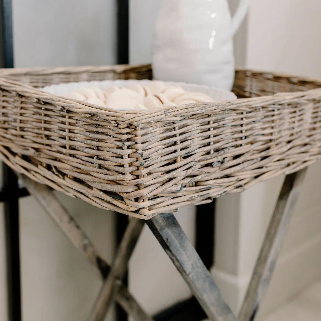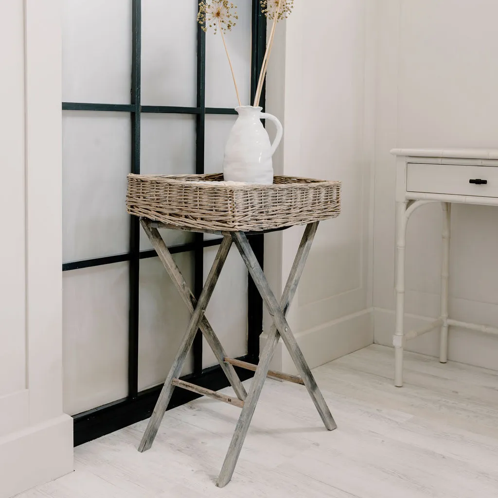 We love a tray table for its practicality combined with good looks! Bring outdoors into your home wih this natural willow topped tray table and grey washed wooden frame. A gorgeous rustic look for drinks, entertaining or as a side table, which can be stored when not in use.