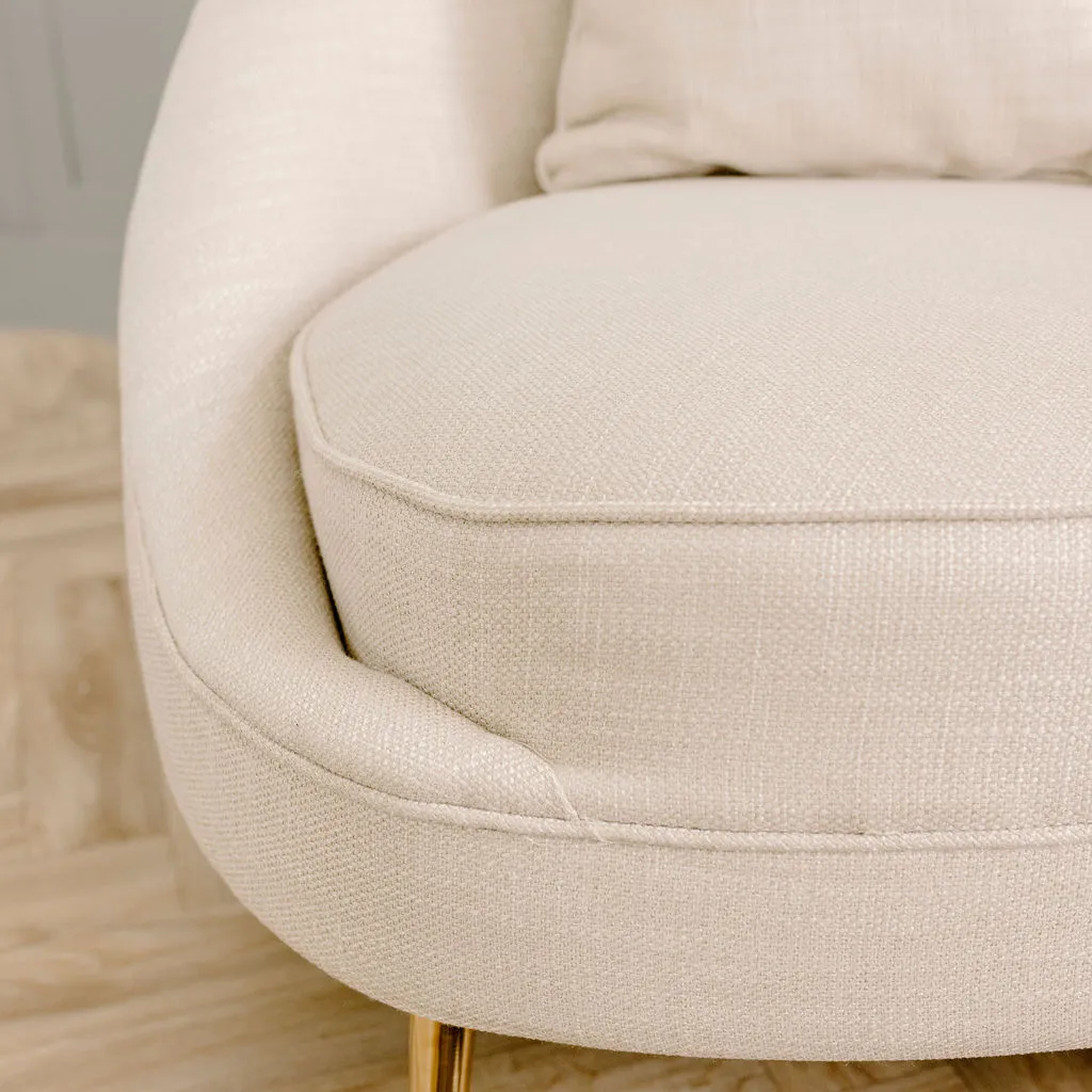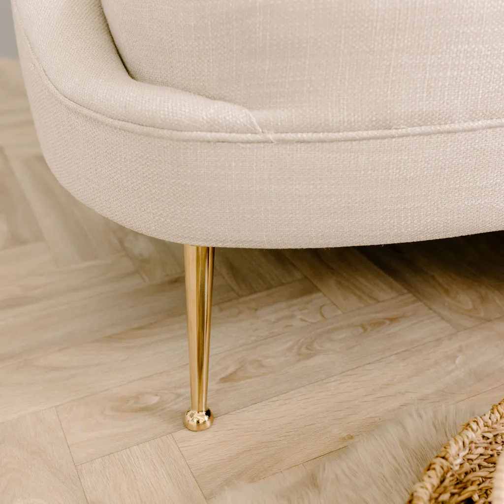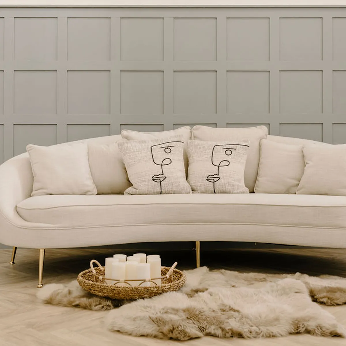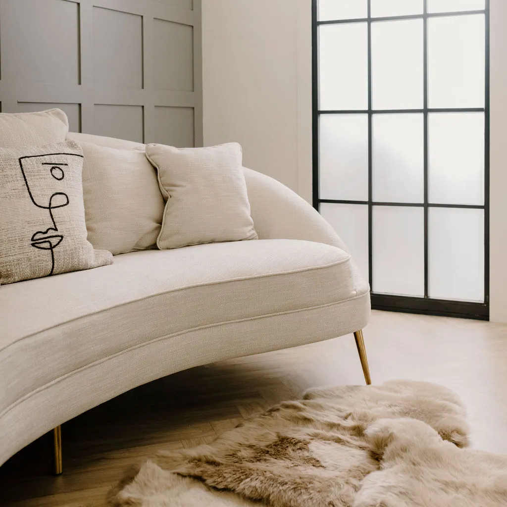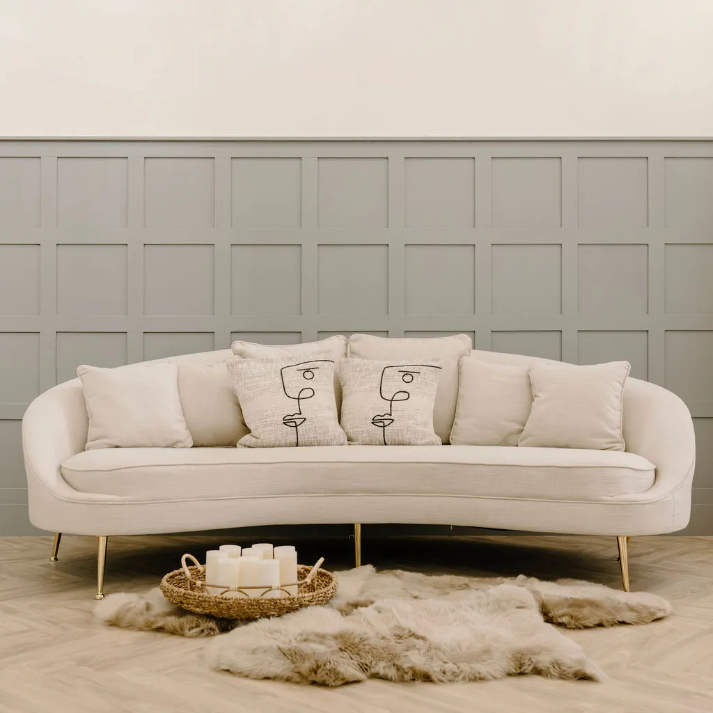 An absolute favourite here at Stylish Home! Inspired by Vladimir Kagan's sensuously formed designs, this curved sofa has been designed with sleek lines to look sexy whilst ensuring people don't sit in a straight line! Its gorgeous linen look fabric and organic curves work fabulously in any home