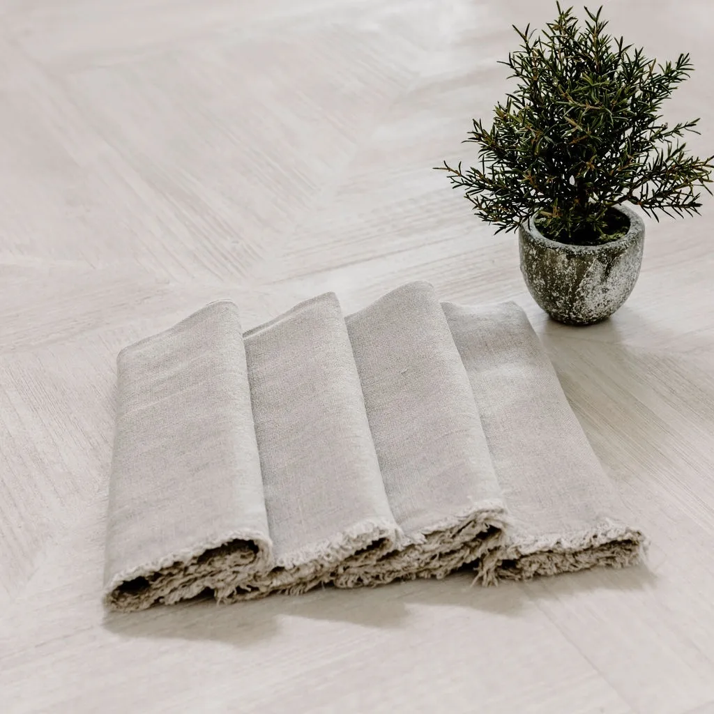 These 100% linen table napkins will add a naturally chic vibe to your tablescape. With their fringed raw edge, and natural dye, they are perfect for classic, modern and scandi looks alike
