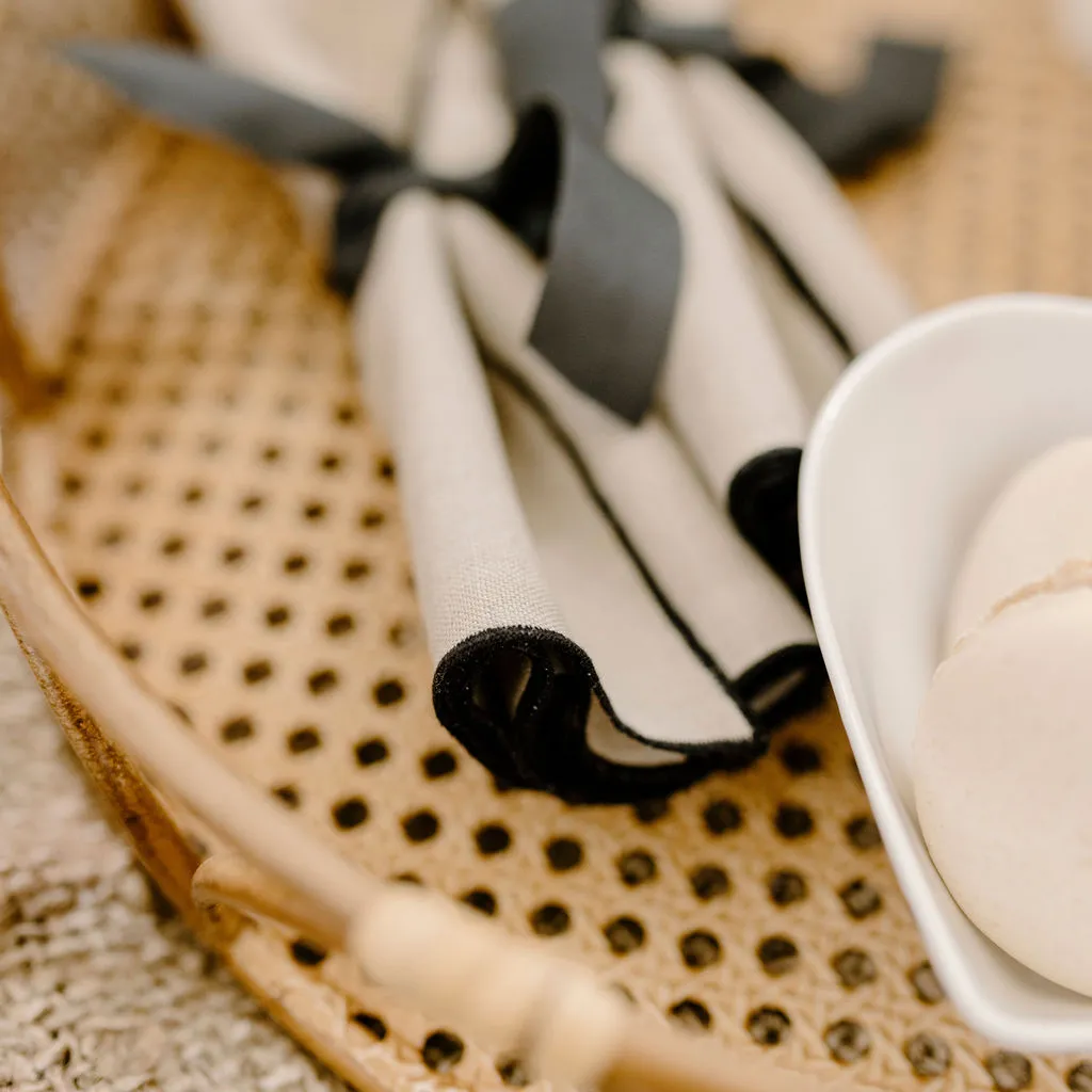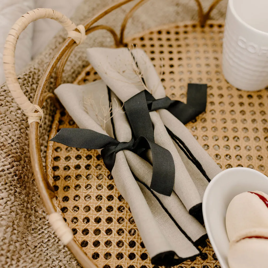 Gorgeous 100% linen napkins with black piped edge detailing. Naturally dyed, we think these are perfect for stylish, modern homes for every day use as well as dinner party chic.