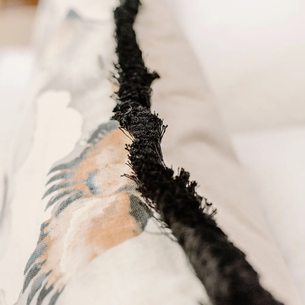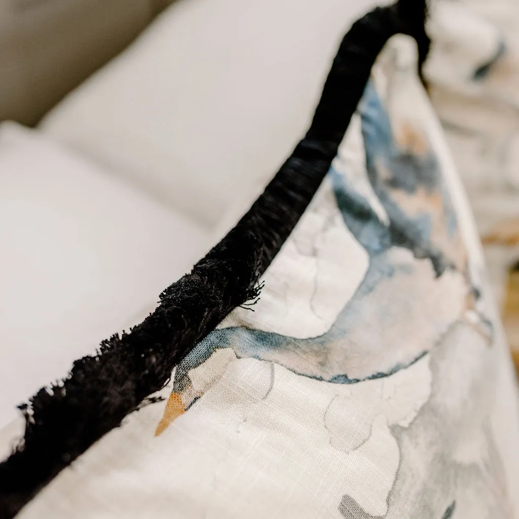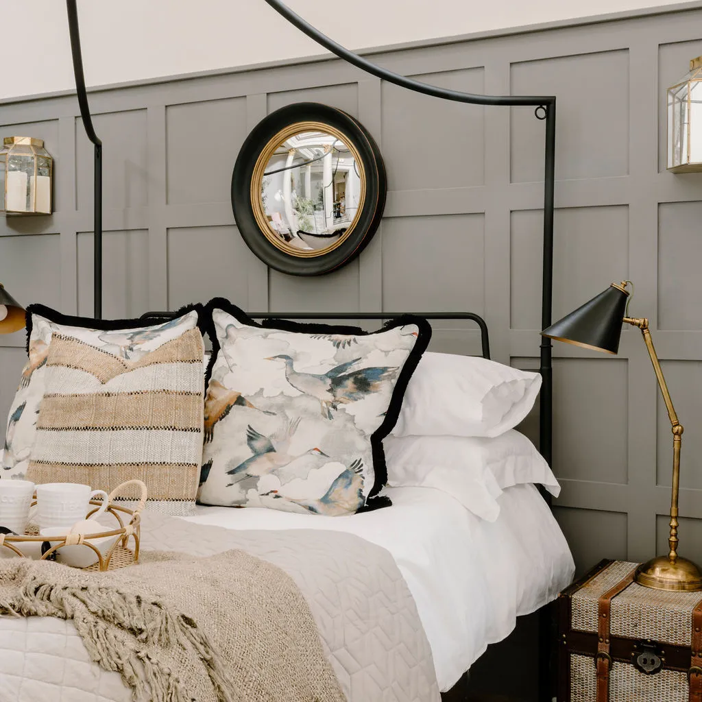 A favourite cushion cover here at Stylish Home, we love the Etsuko cushion for its stunning water colour flying cranes in muted neutral palette. We love the symbolism too - cranes being a symbol of good luck and longevity. Did we mention the black fringed detailing too?