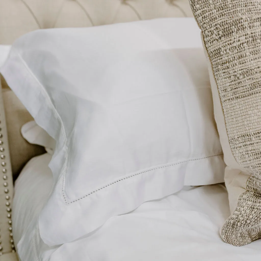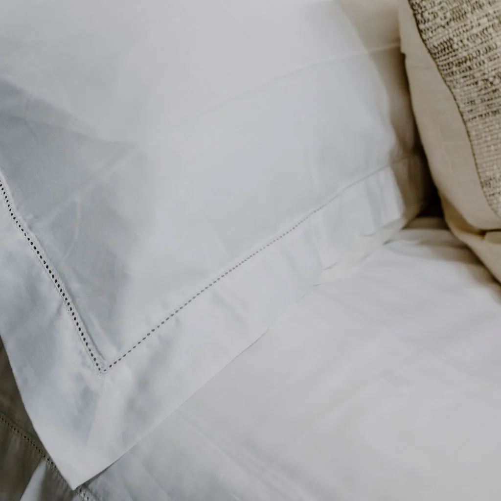 Eva White Bed Linen Set with Hemstitch detailing