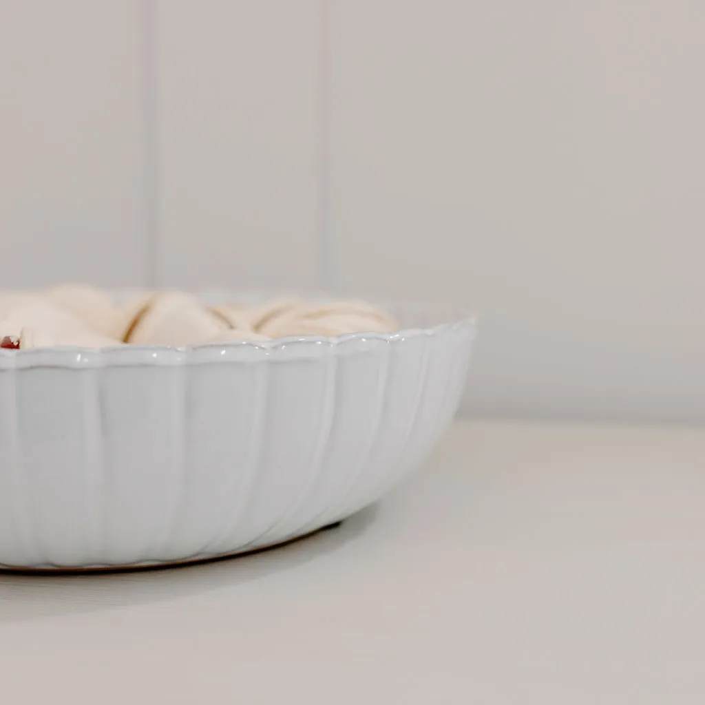 The generous proprtions of this bowl, together with the white glaze and pretty fluted edge, make it a stunning decorative piece. Style it with other white ceramics for maximum impact.