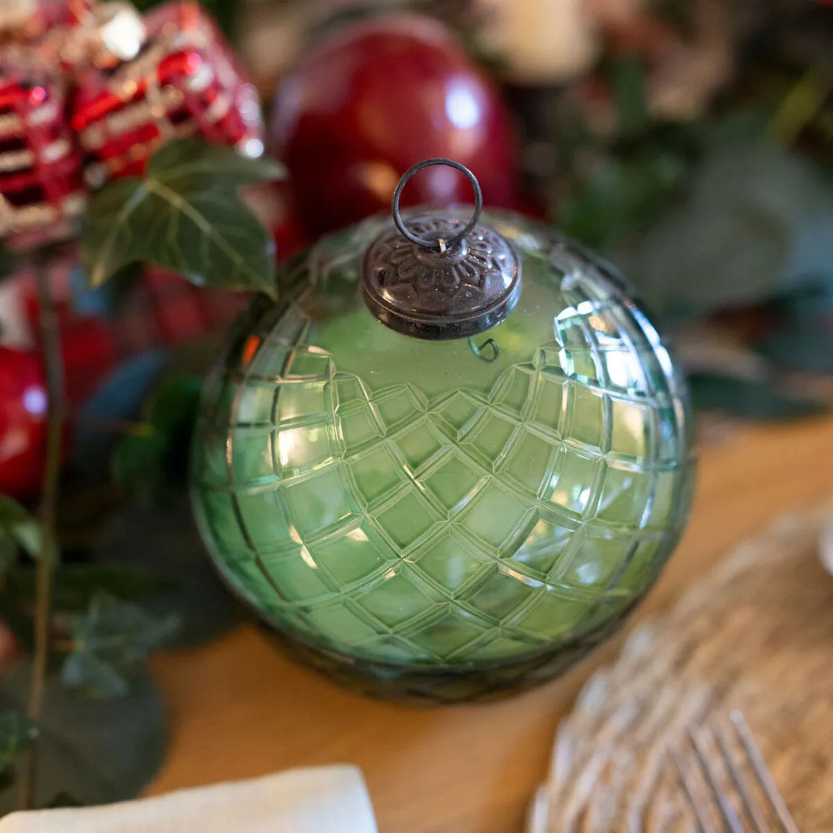 Exquisite Glass Candle Pot with Cut Glass Decoration (Dark Green, Medium) Cedar scent