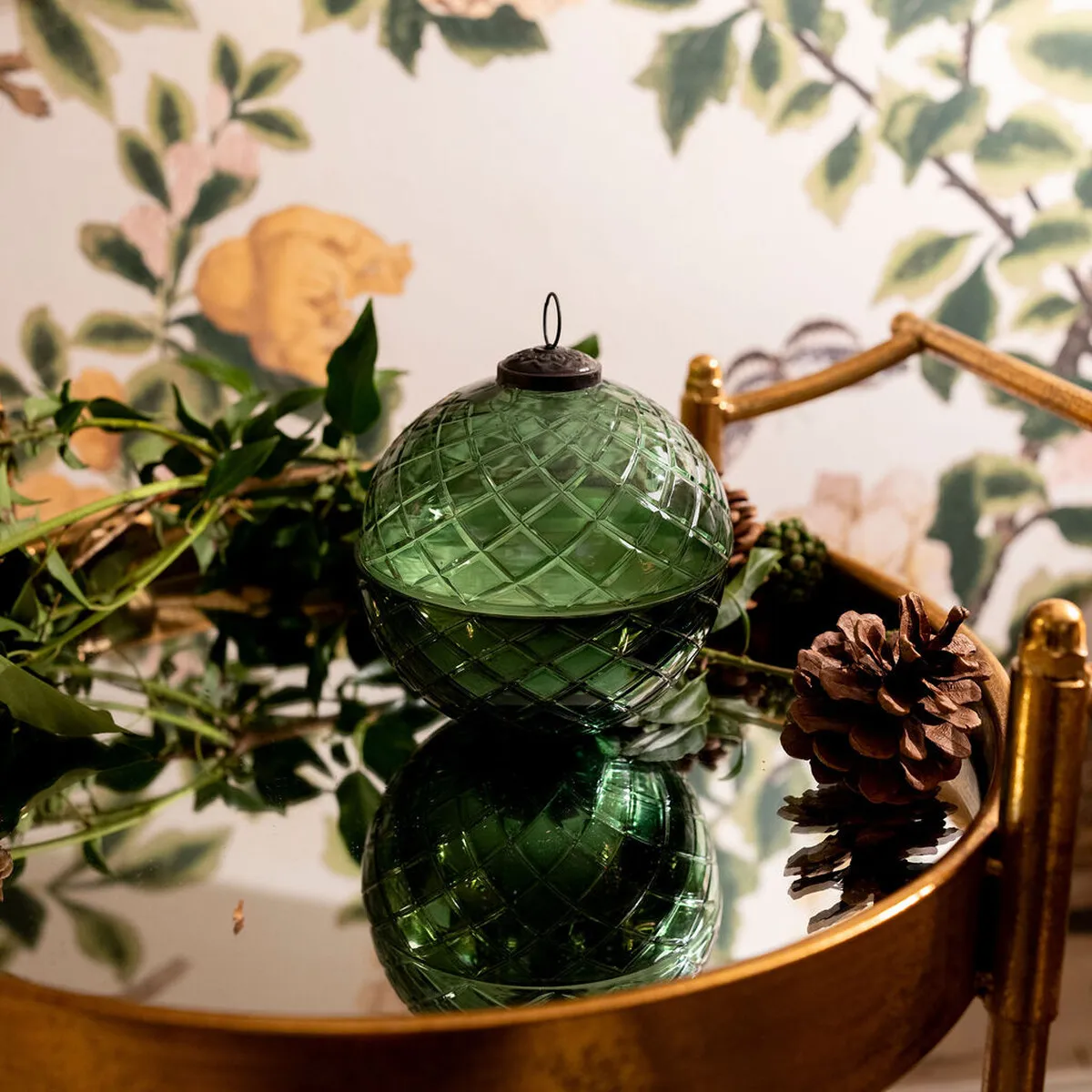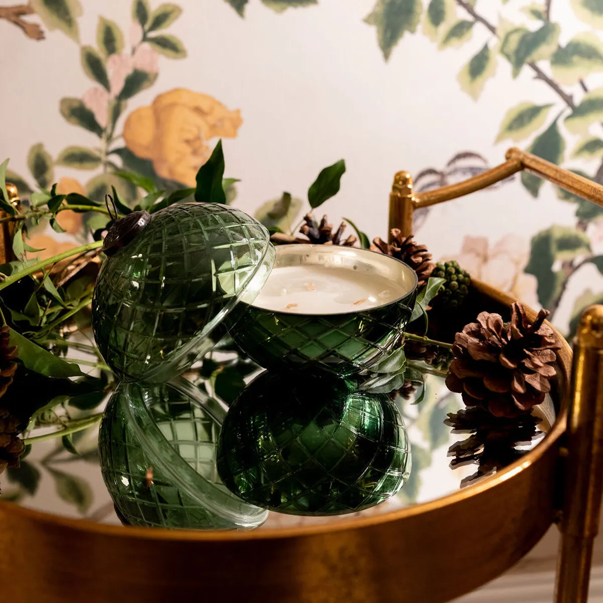 Exquisite Glass Candle Pot with Cut Glass Decoration (Dark Green, Small) Cedar scent