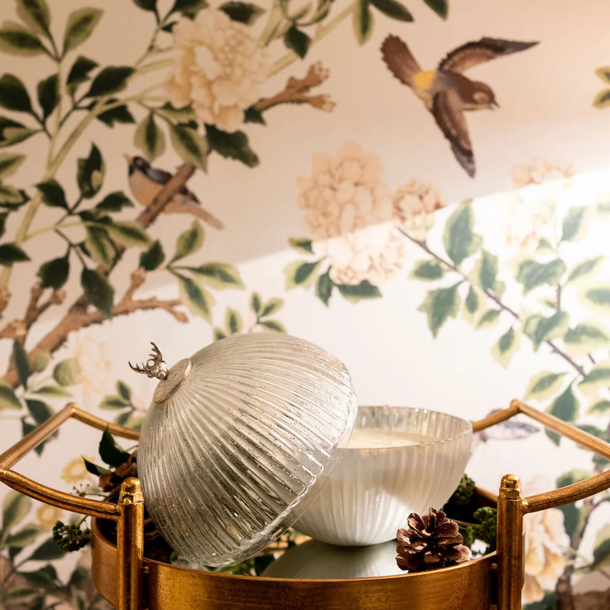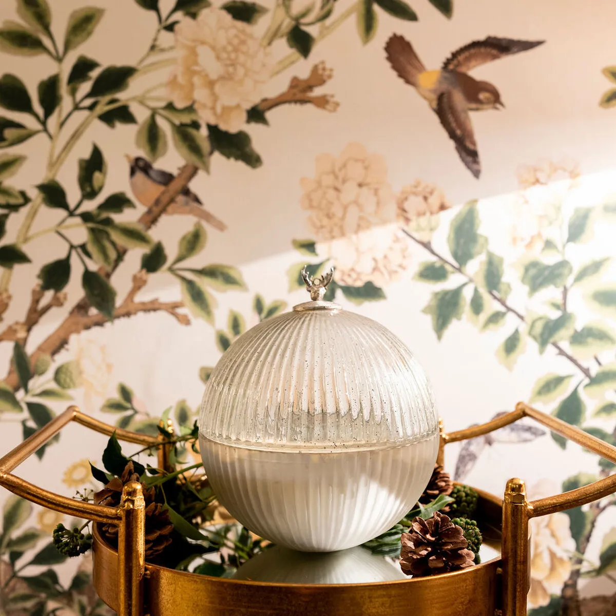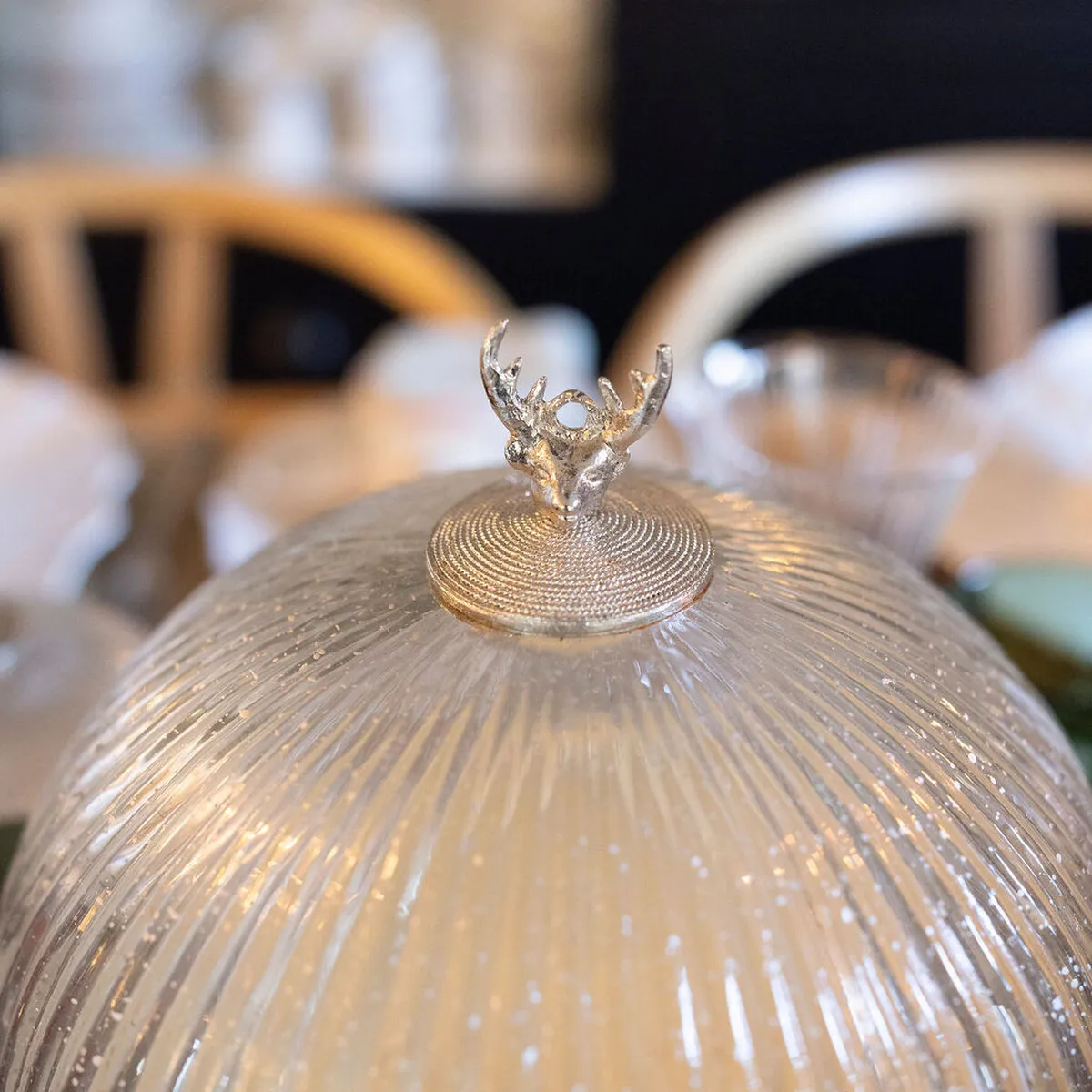 Exquisite Silvered Glass Candle Pot with Reindeer Top (Large) Cedar scent