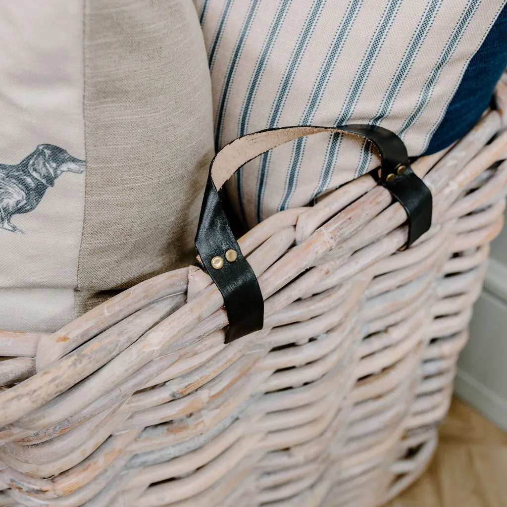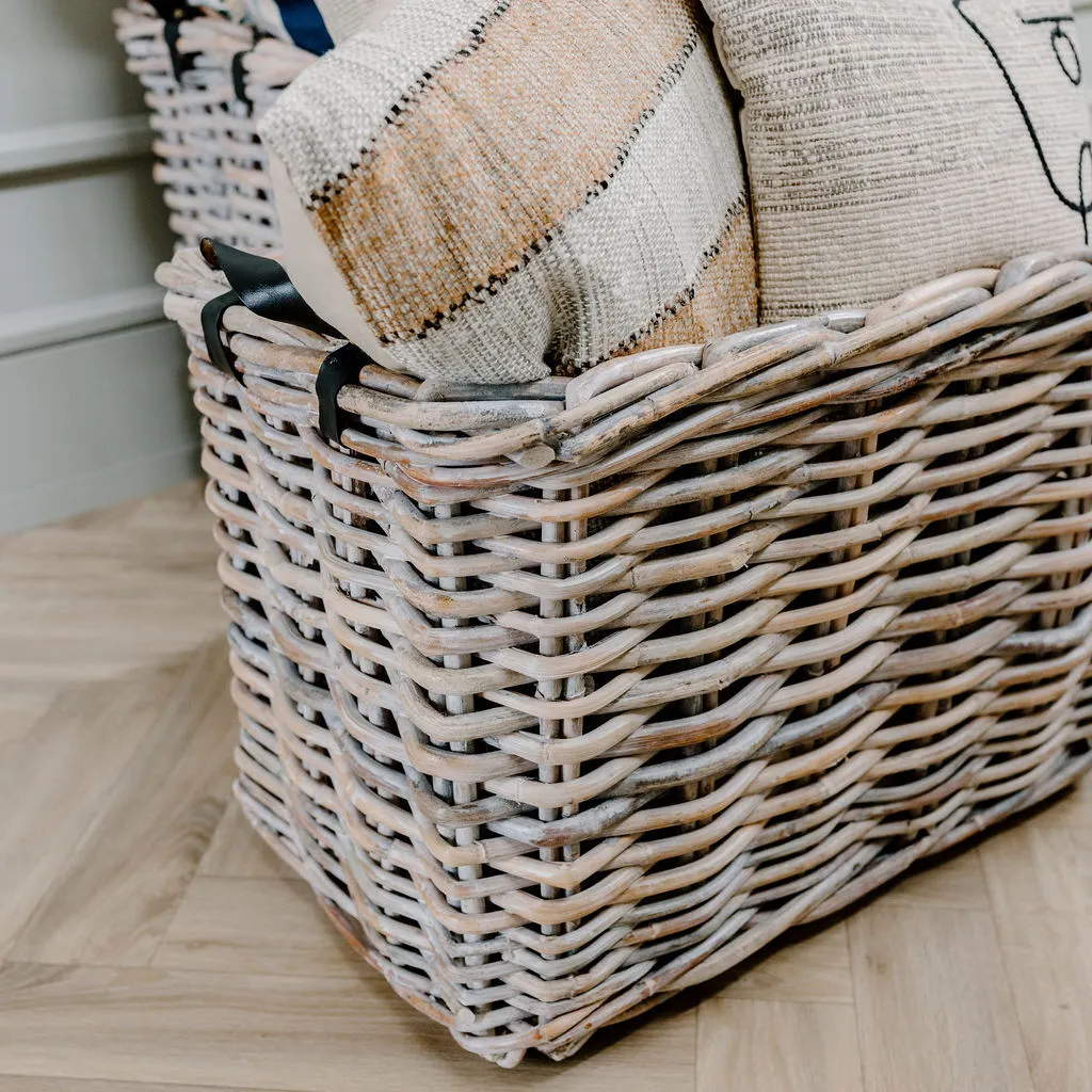 The finest quality, strong baskets with leather handles, made from 100% rattan. Their extra large size makes them ideal for storing logs, soft furnishing, toys etc. The ideal way to de-clutter your space and make tidying super quick! You'll wonder how you managed witout them!