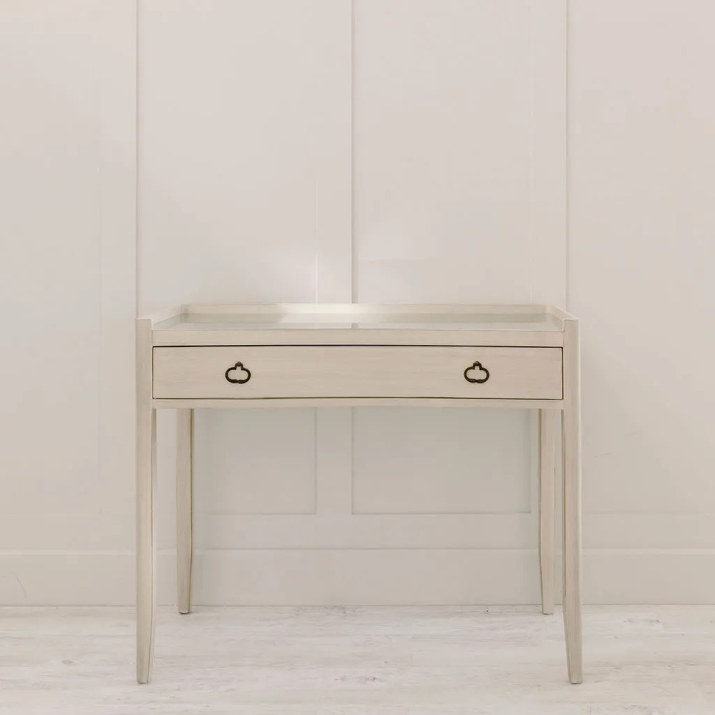 Features a curved front, making it especially comfortrable as a desk or dressing table. Ideal for smaller spaces.