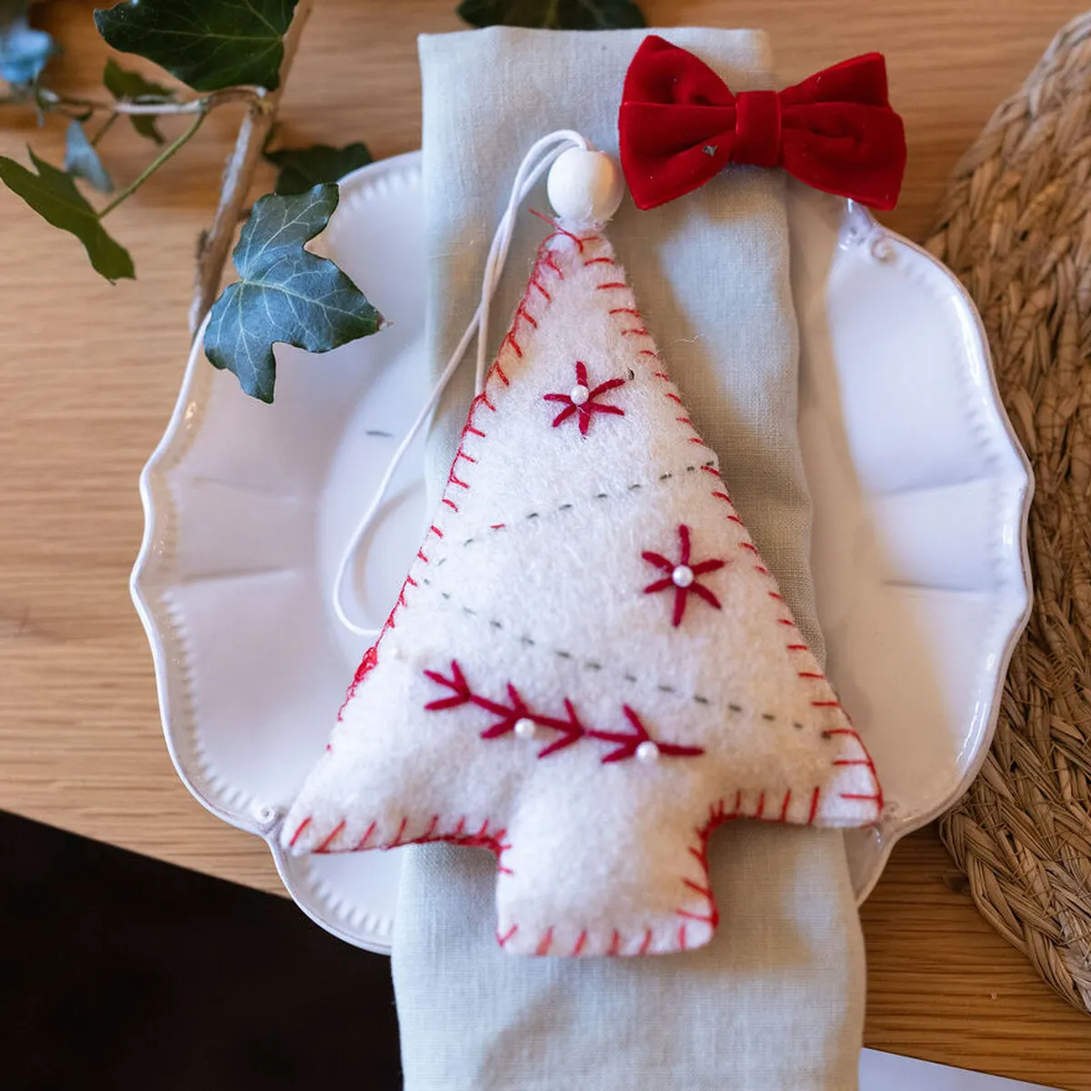 This is beautifully hand felted and makes a sensational ornament on a tree, garland or place setting