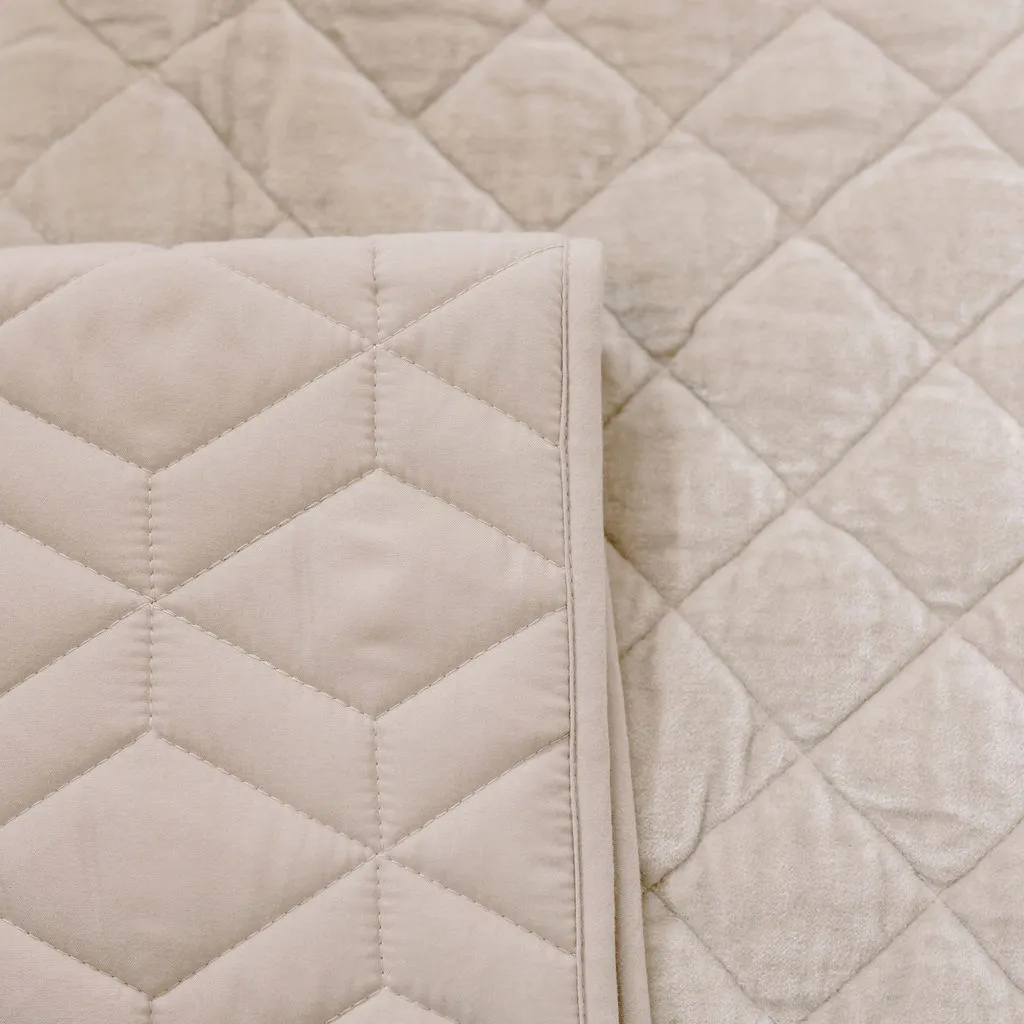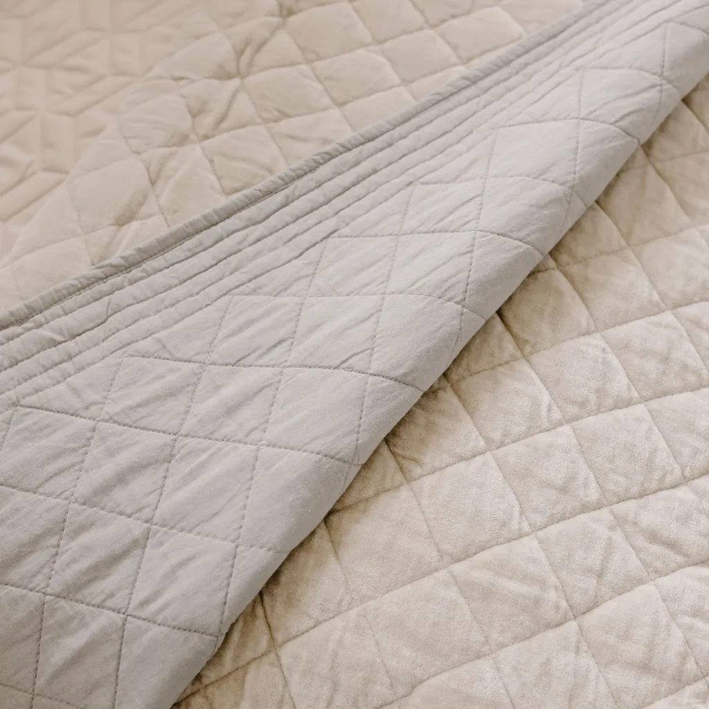 Harriet Grey Quilted Velvet Bedspread -Superking