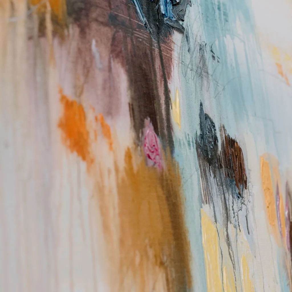 A large contemporary oil on canvas which will add a modern splash of colour and texture to either a minimalist or maximalist scheme. Each one is unique as they are 100% handpainted. See what you can see as you gaze at the gorgeous palette of colour and brush strokes. Adds a designer, modern look to your living, dining or office space