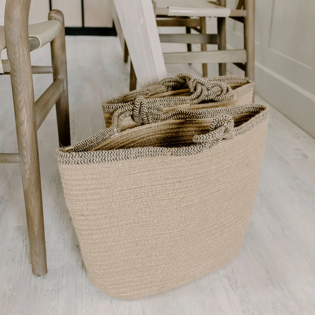 One of our favourties, this Jute shopper with knotted rope handles is guaranteed to solve your clutter issues whilst looking great! As good looking as it is hard working, our Jute shopper is perfect for everyday storage of small items.