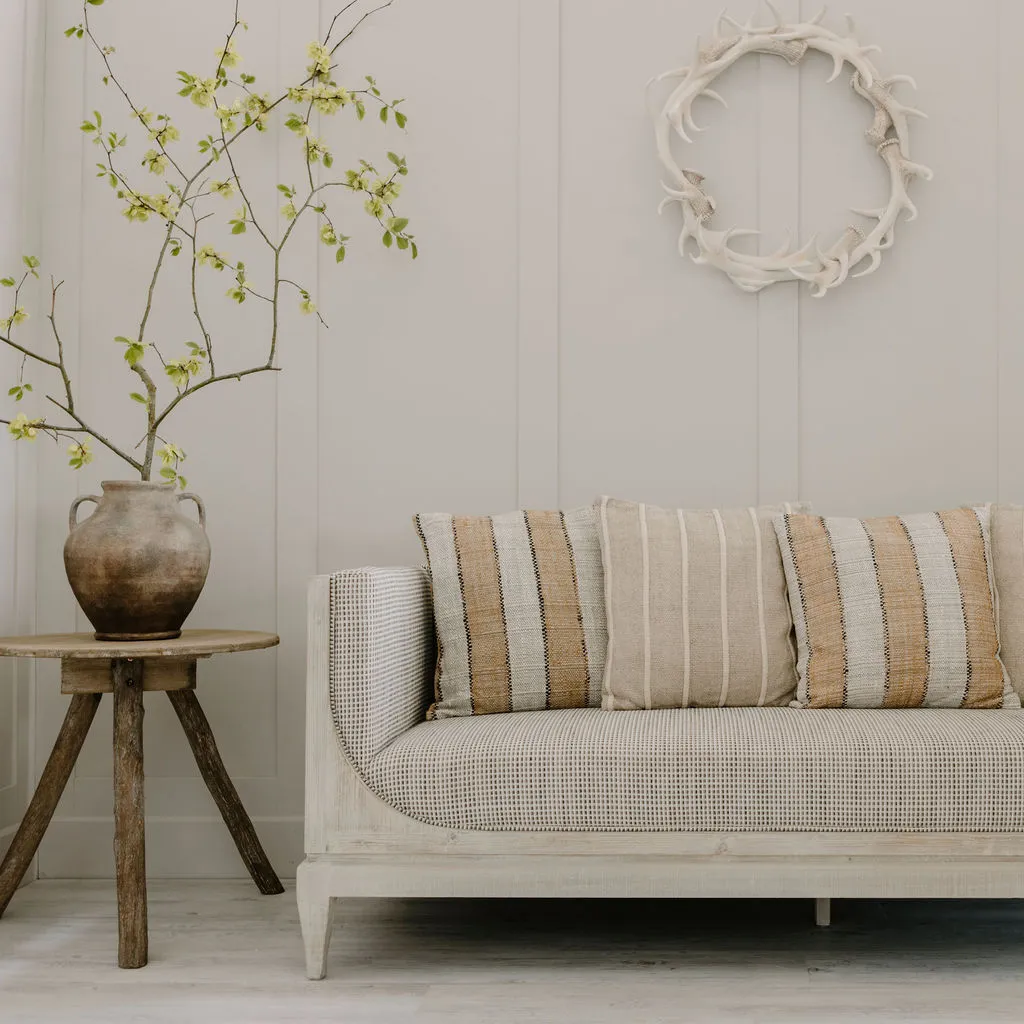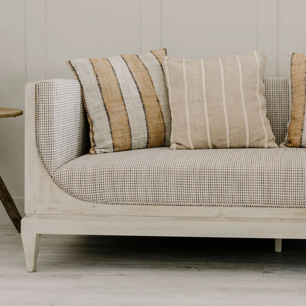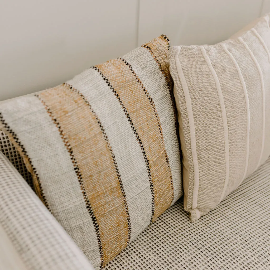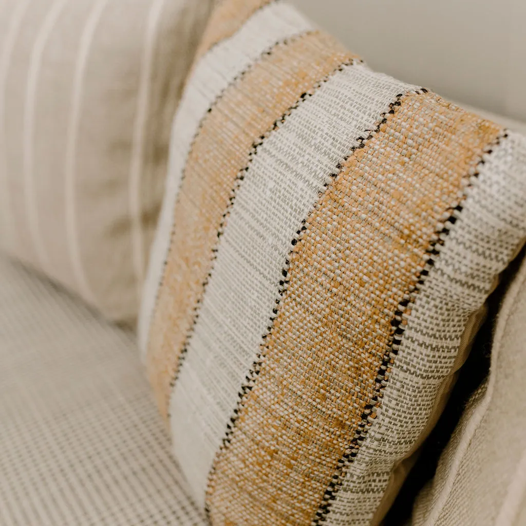 Instantly update your interiors by adding texture and comfort with new cushions! We love this wide striped version with neutral but warm honeyed palette as it's endlessly versatile and works brilliantly when styled with other cushions, whether plain or patterned!