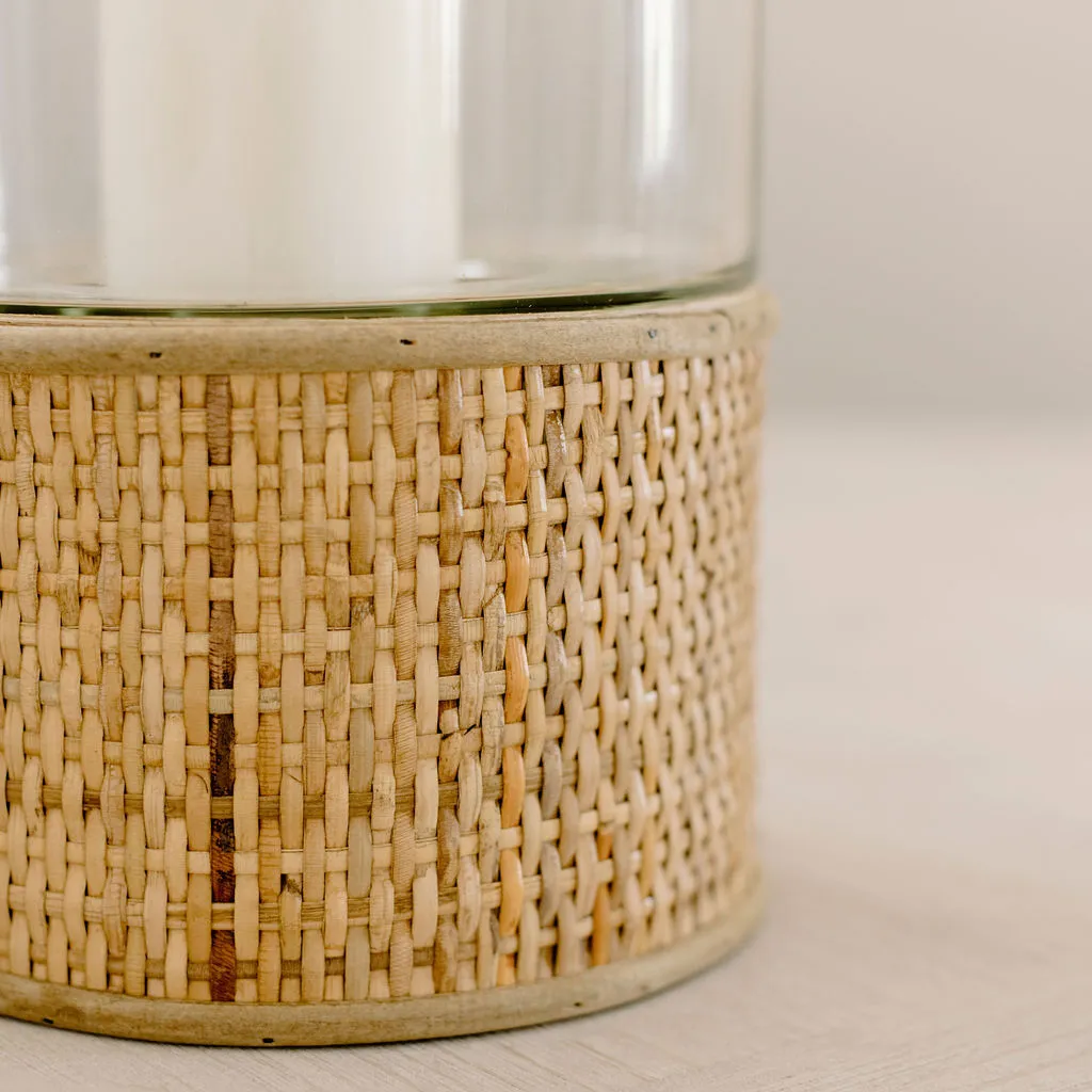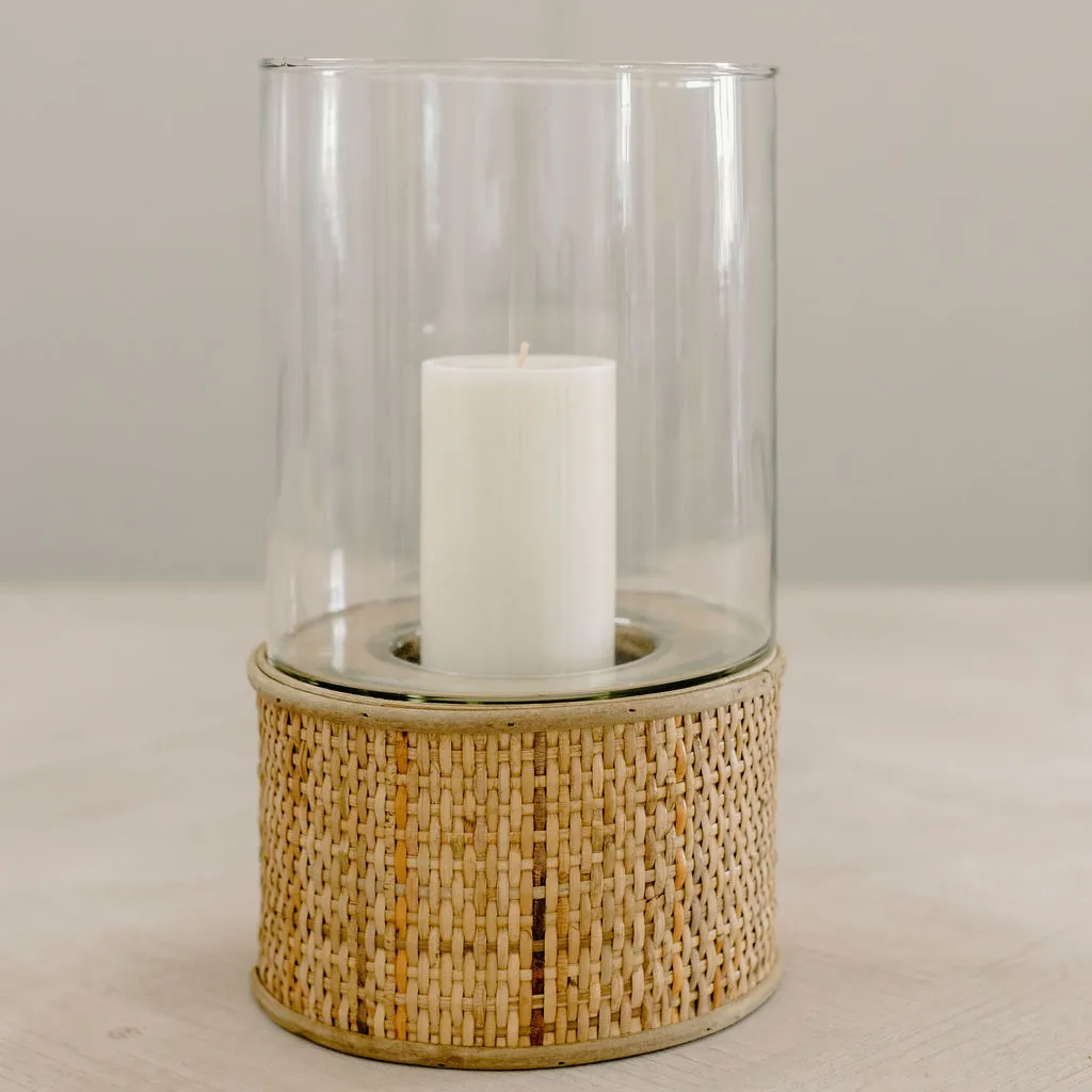A versatile hurricane lamp that styles beautifully on consoles, dinner tables, coffee tables, side tables and much more - just pop in the candle of your choice for that perfect ambient glow of candlelight. The textured base adds a stylish, organc look to your home.