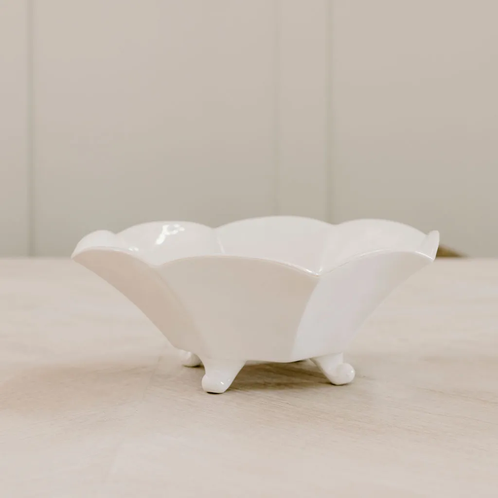 The fluted edge to this bowl together with the raised feet, brings such elegance to your supper table. Whether a dinner party or school night, stylishly serve up veggies, rice, pasta, meat, potatoes or the humble chip! Perfect Fruit Bowl too.