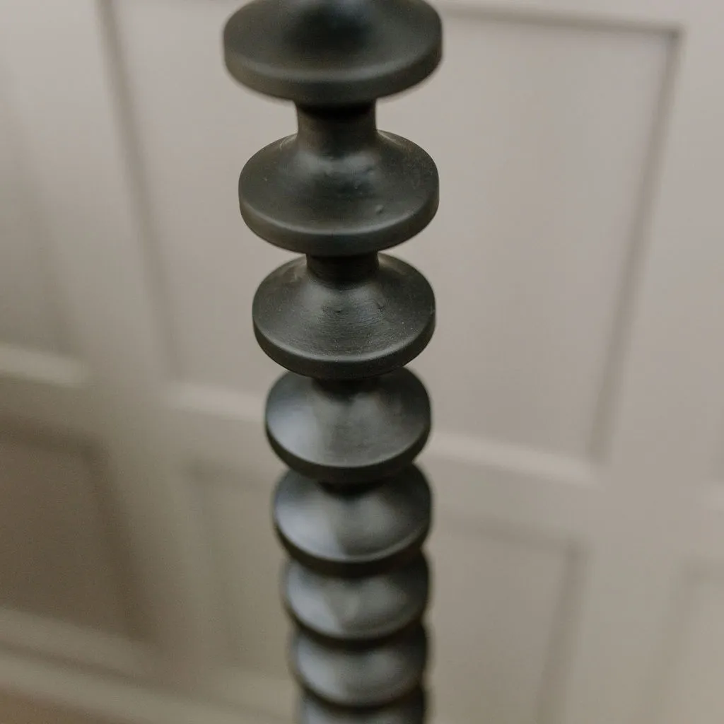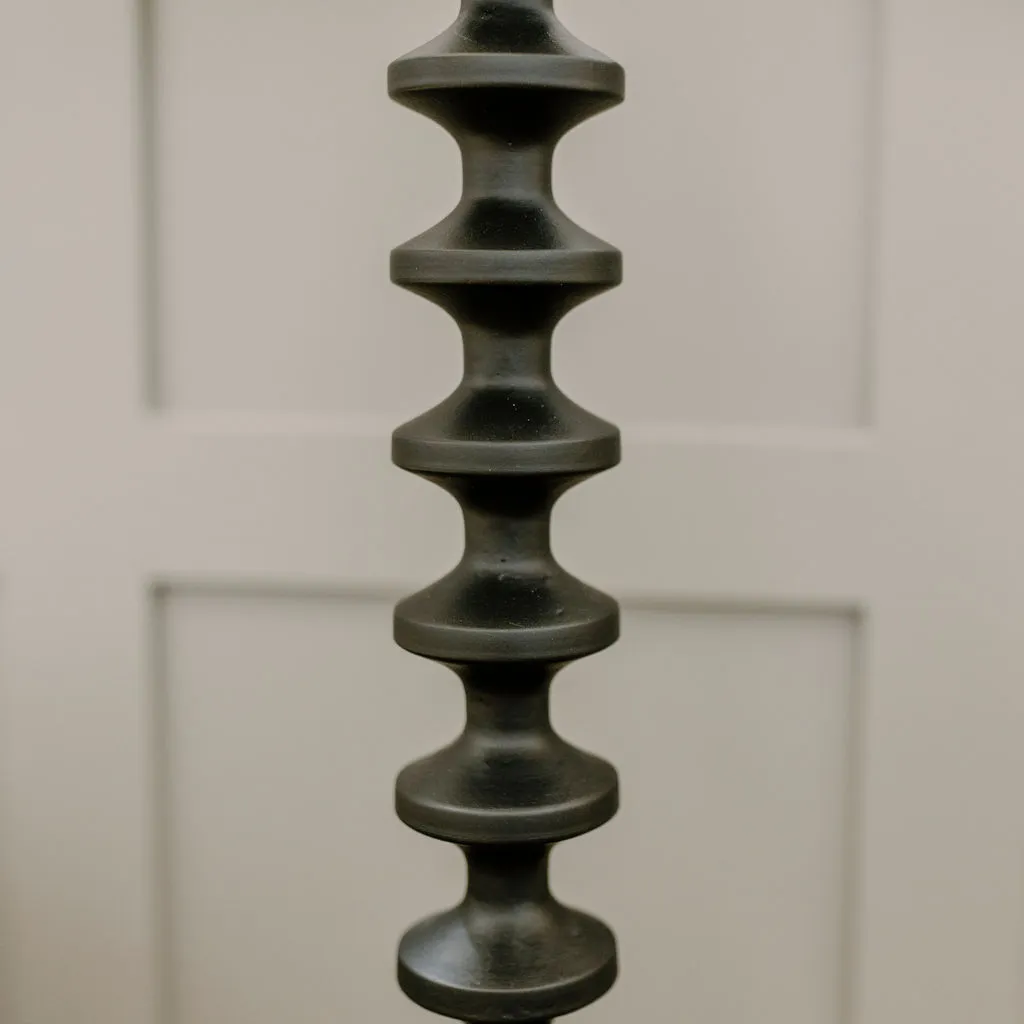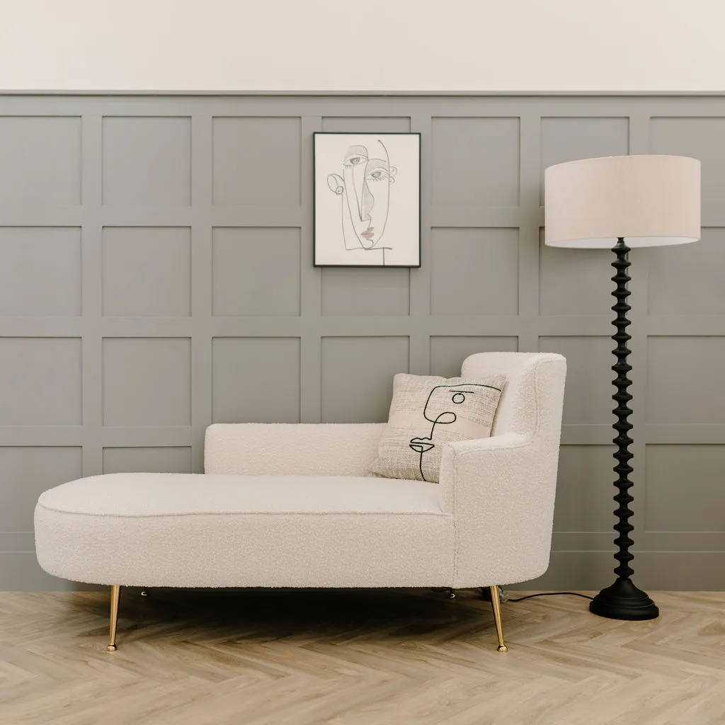 We adore this floor lamp. Beautifully hand turned, the ridged base exudes charm and adds delicious texture and style to your room. A real eye catcher! Comes with neutral linen shade.
