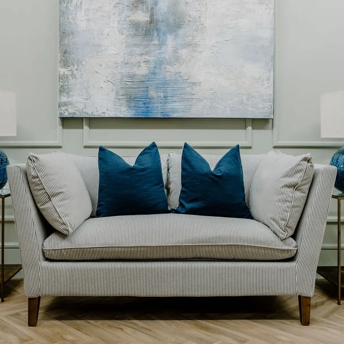 Add sophistication to your space with this curated and textured abstract artwork. Handpainted in dark blues, greys and neutrals, it will add atmosphere and impact to your walls - its scale is perfect for above a fireplace, alcove or above a console. Hugely versatile.