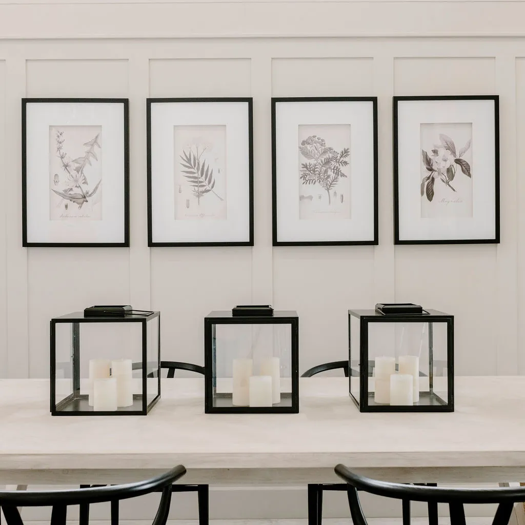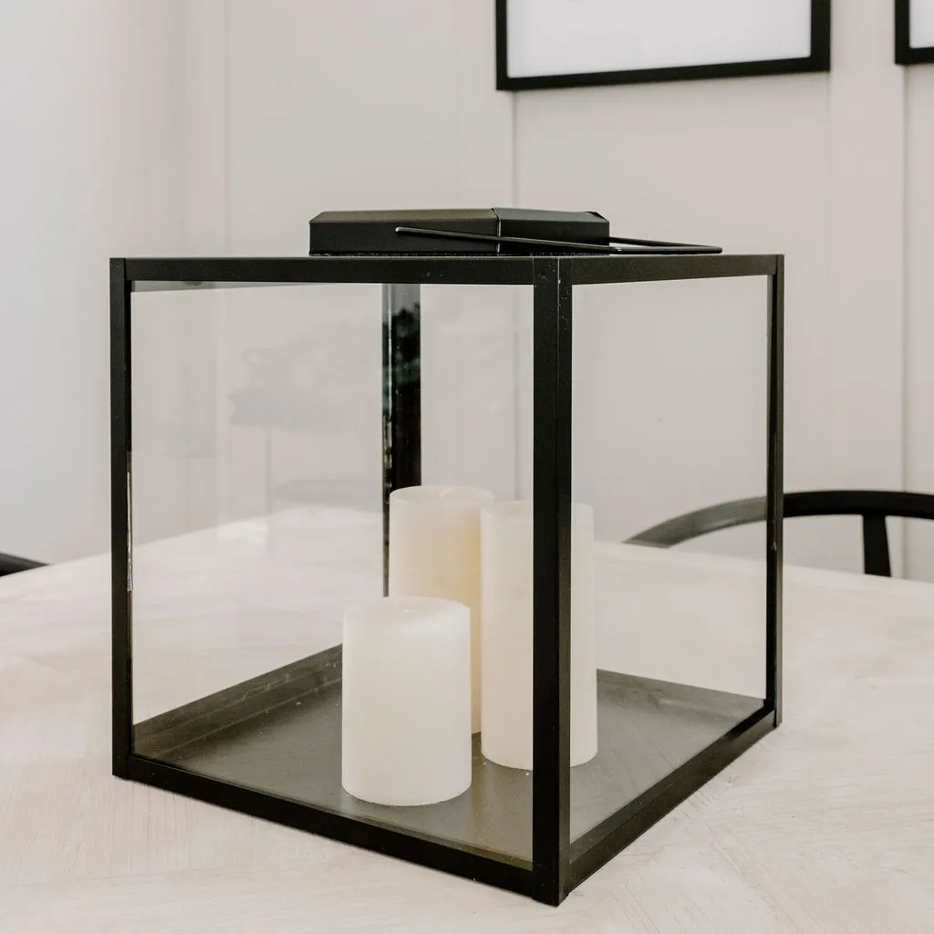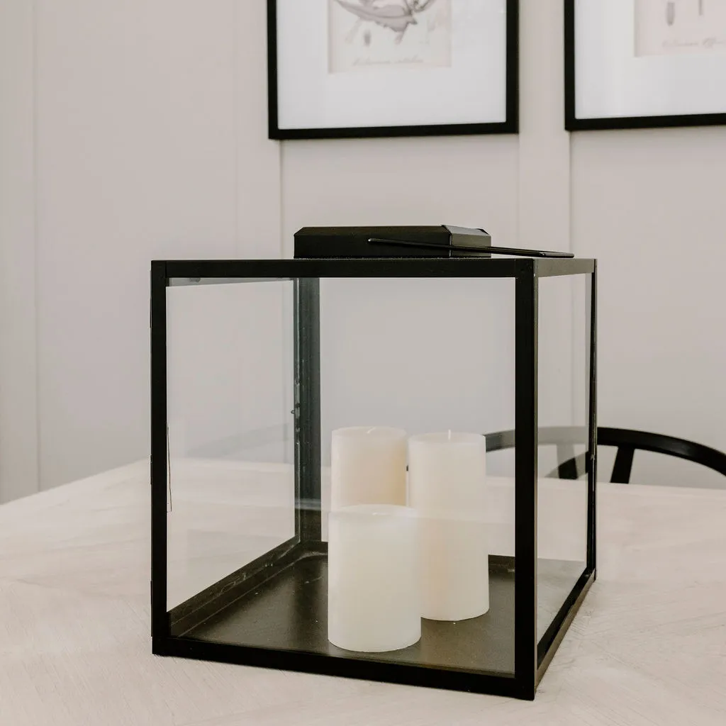 The simple but striking design of this lantern makes it a design staple for your home. Each panel has been soldered by hand and each piece of glass fitted. With a wide hinged door, it looks beautiful with several candles of different height. We love it styled on kitchen and dinner tables or on consoles for a truly welcoming vibe