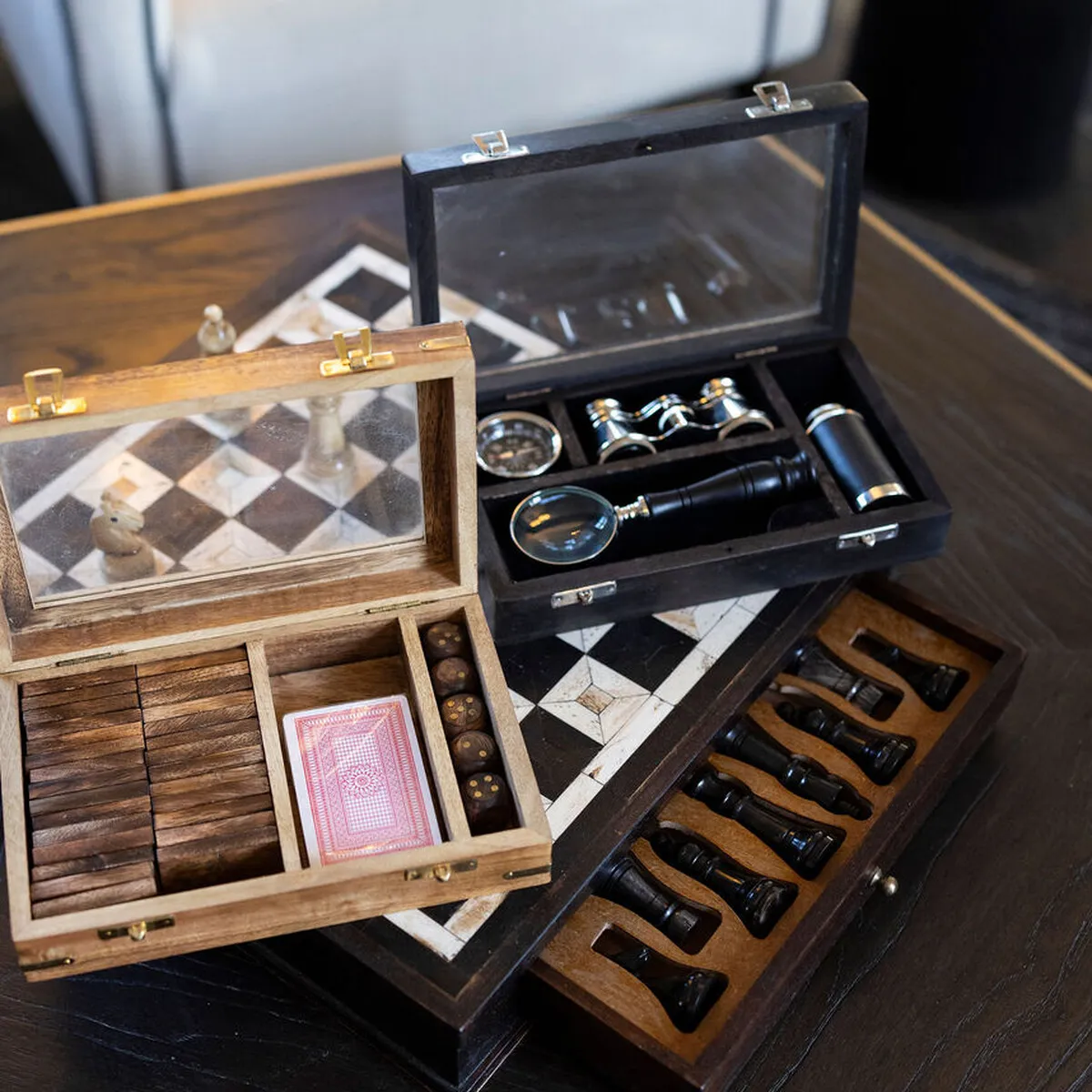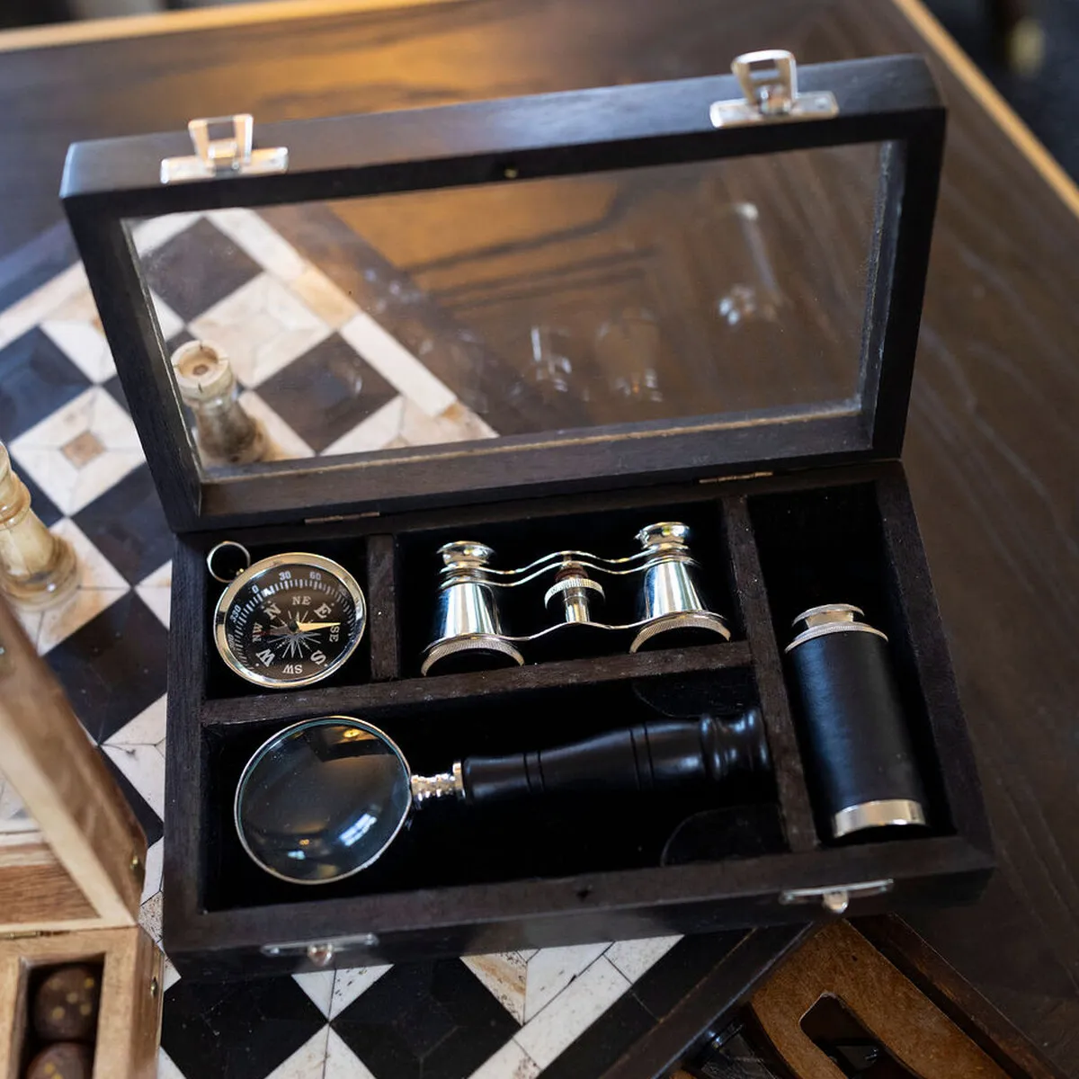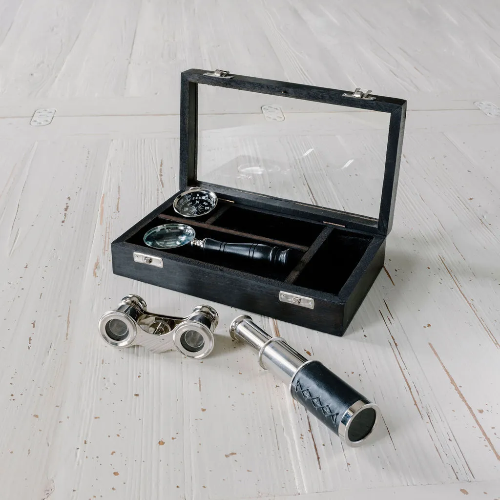 A wonderful and practical gift for a one who loves to explore the great outdoors or bird watch from their kitchen! This gorgeous set comes in a wooden box and contains a telescope, binoculars, compass and magnifying glass. It's also a stylish piece for your home office or shelving unit