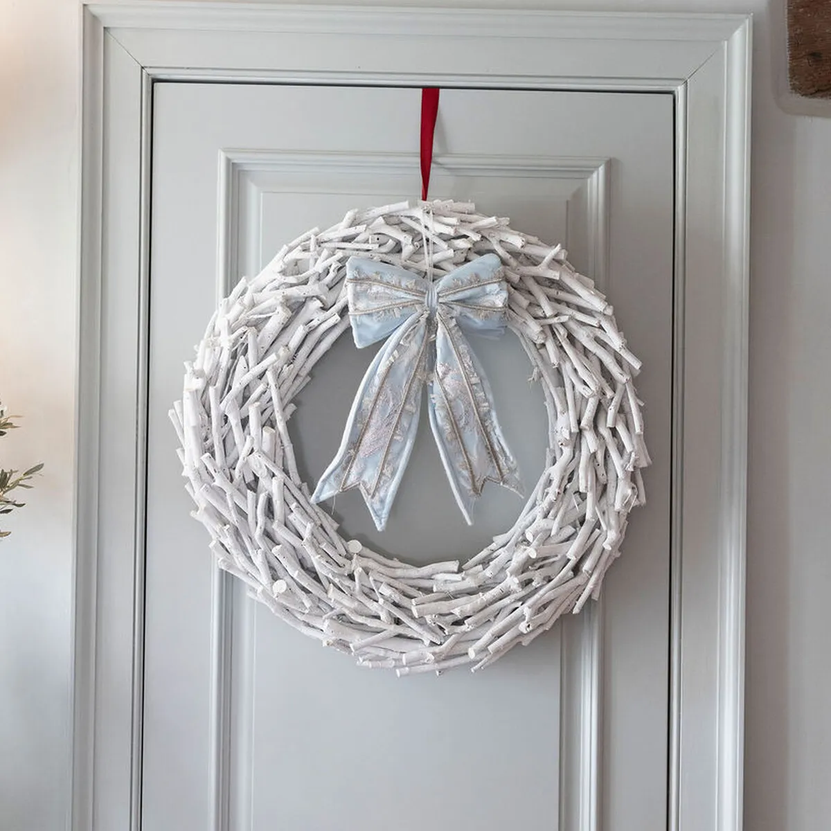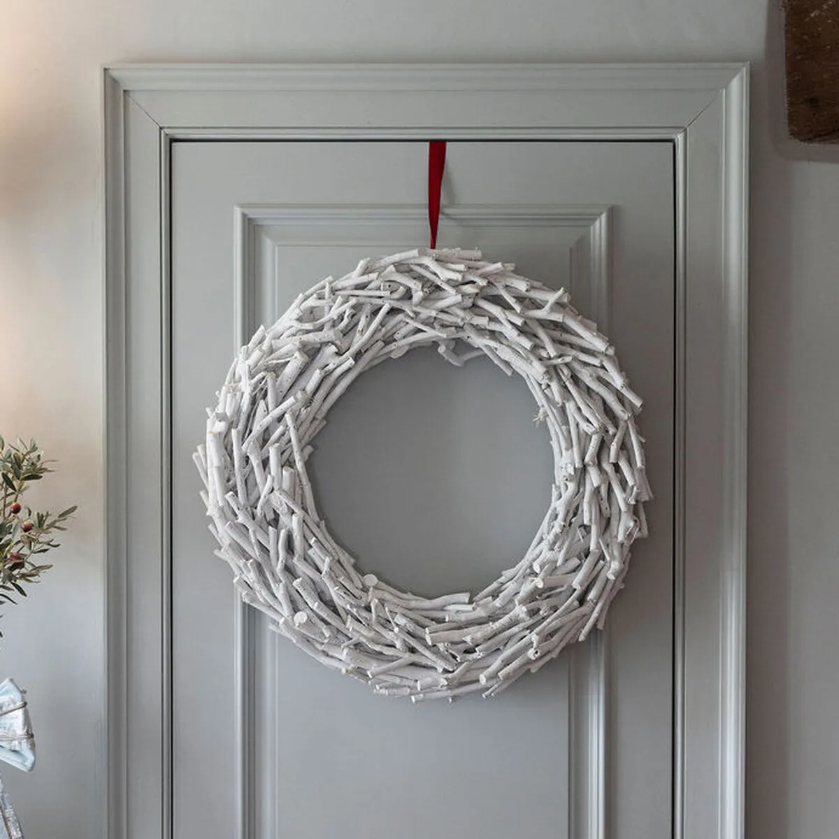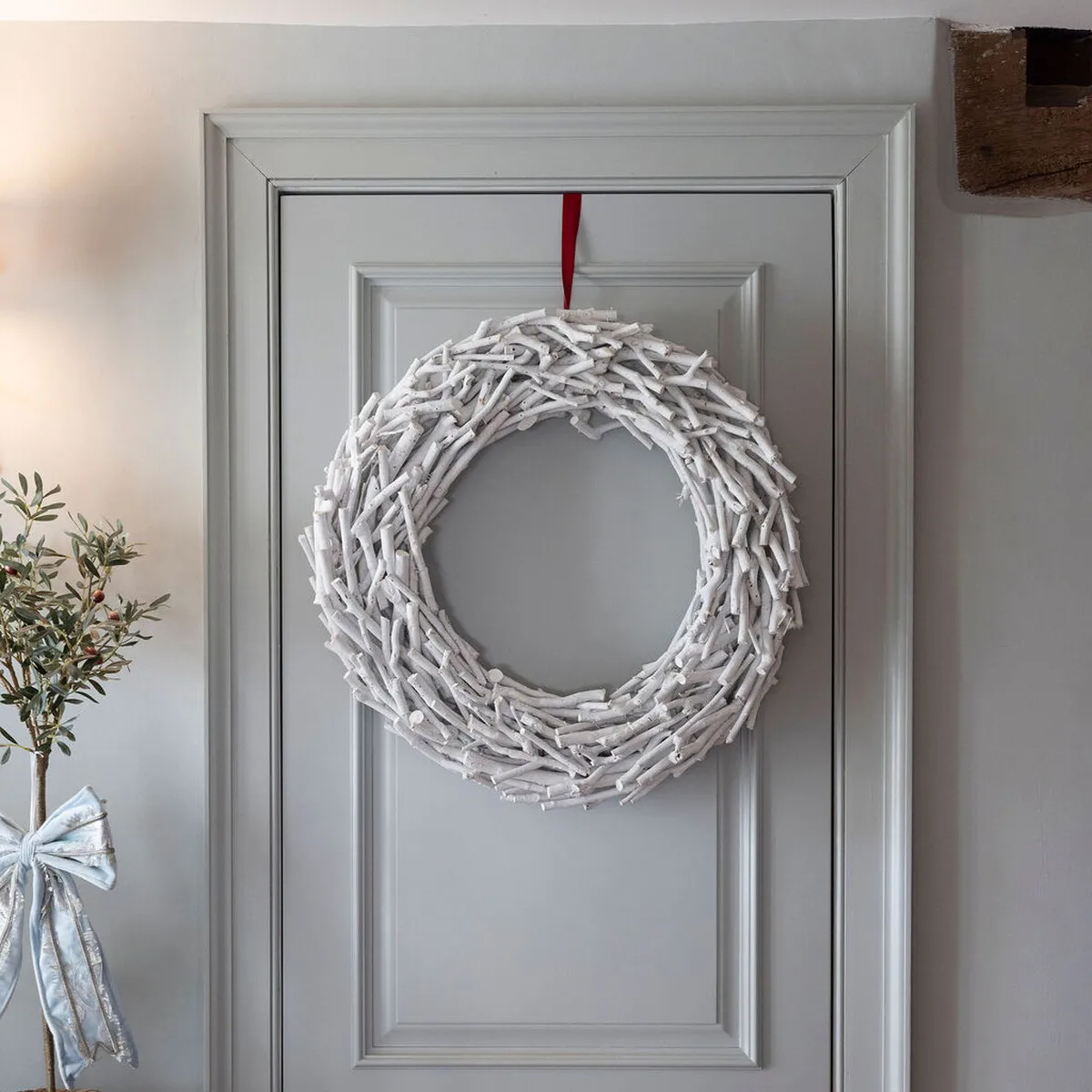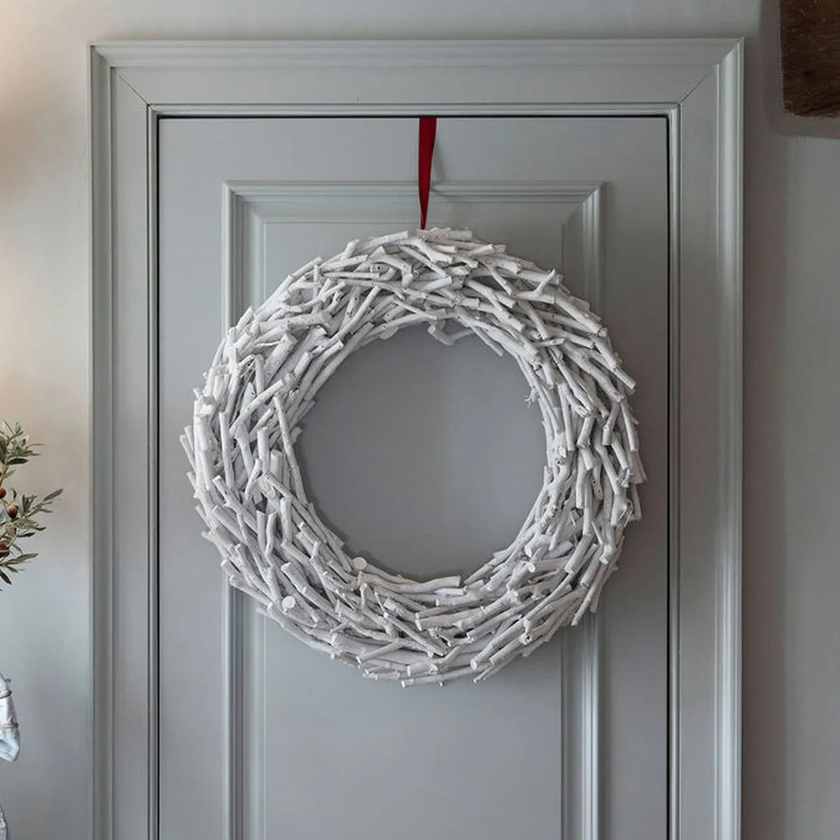 This oversized wreath is a definite statement piece. Enjoy its gorgeous form and white painted finish as is for an effortless look, or adorn with hanging decorations and foliage to personalise