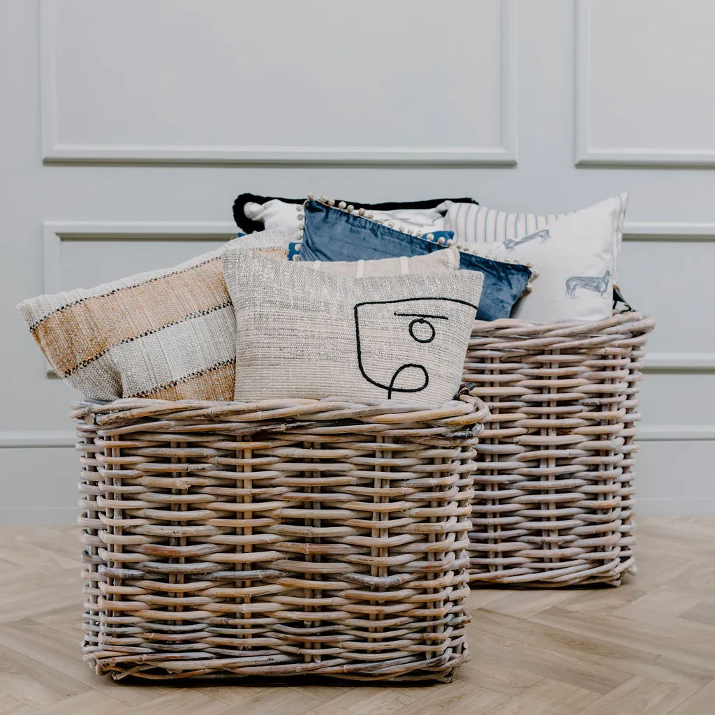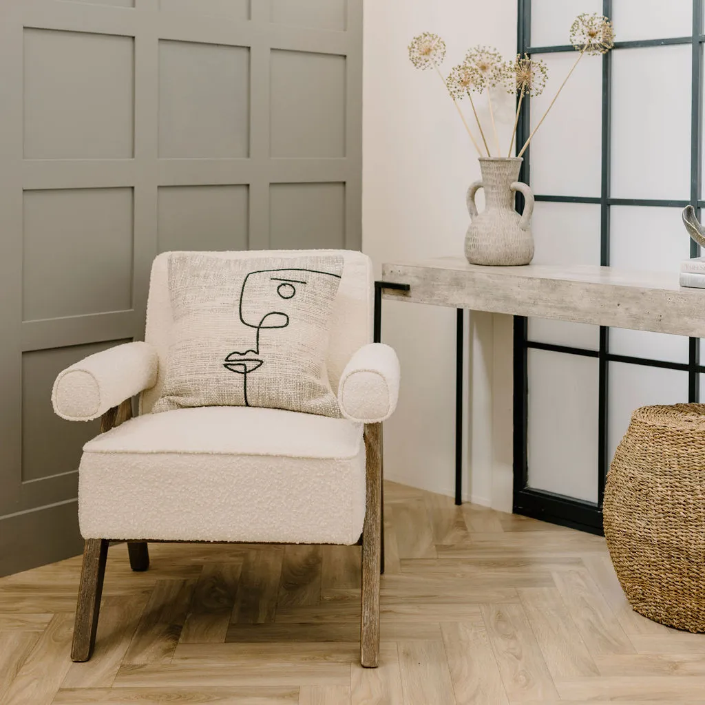 The design and textures on this cushion cover make it a stand out piece. The design is brought to life with modern line drawing embroidery in black against a textured 100% cotton with muted tones. Stunning.