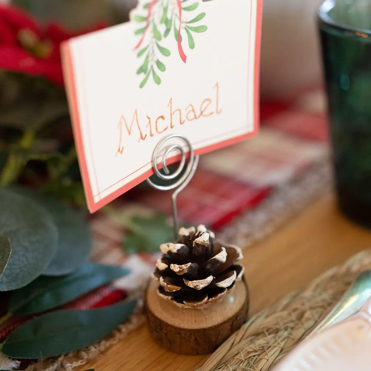 Your family and friends will love these place card holders. Customise your table settings for each guest whilst ramping up the forest green, natural foliage, cosy holiday vibe.