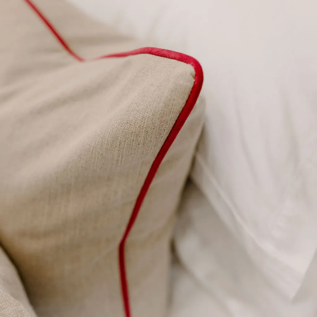 This pretty cushion cover is neutral in tone but has a gorgeous splash of colour via a velvet hot pink piping at the seams. A superb cushion to mix and match.