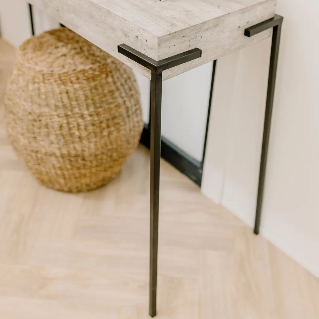 A slim versatile console to fit into any space; industrial vibe