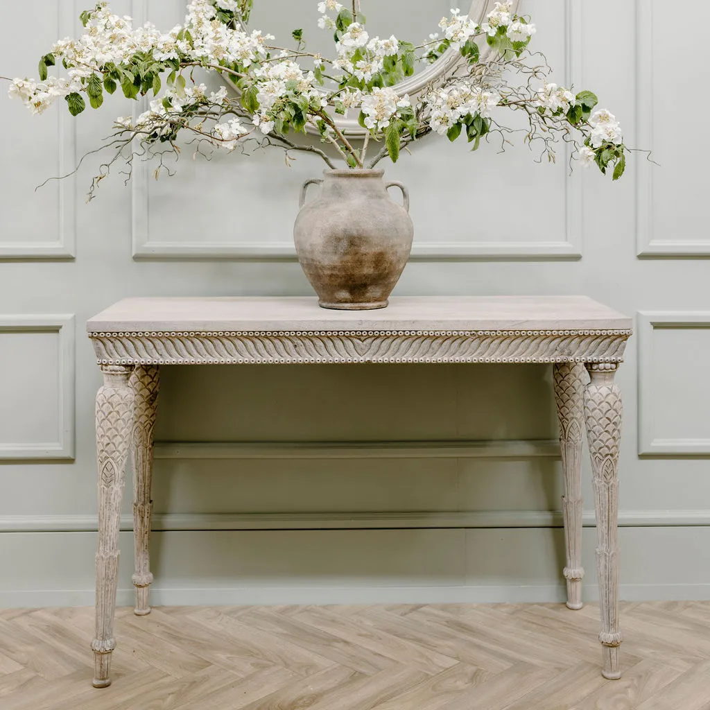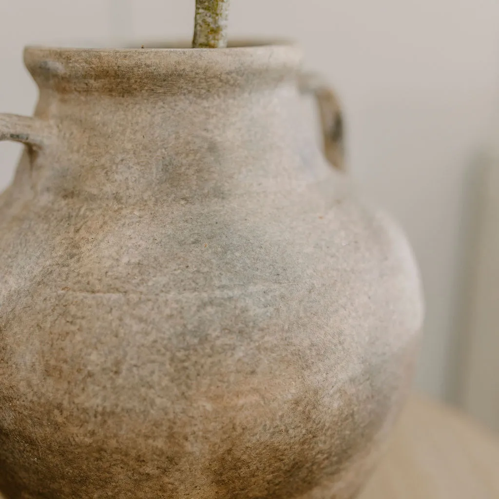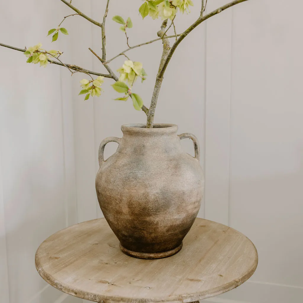 This urn really is a statement piece with its distressed terracotta finish, organic looks and symmetrical 2 handles. Fill it full of foliage for a modern rustic look. As terracotta is porous, we recommend a liner or jam jar for holding water for fresh stems or use faux if preferred.