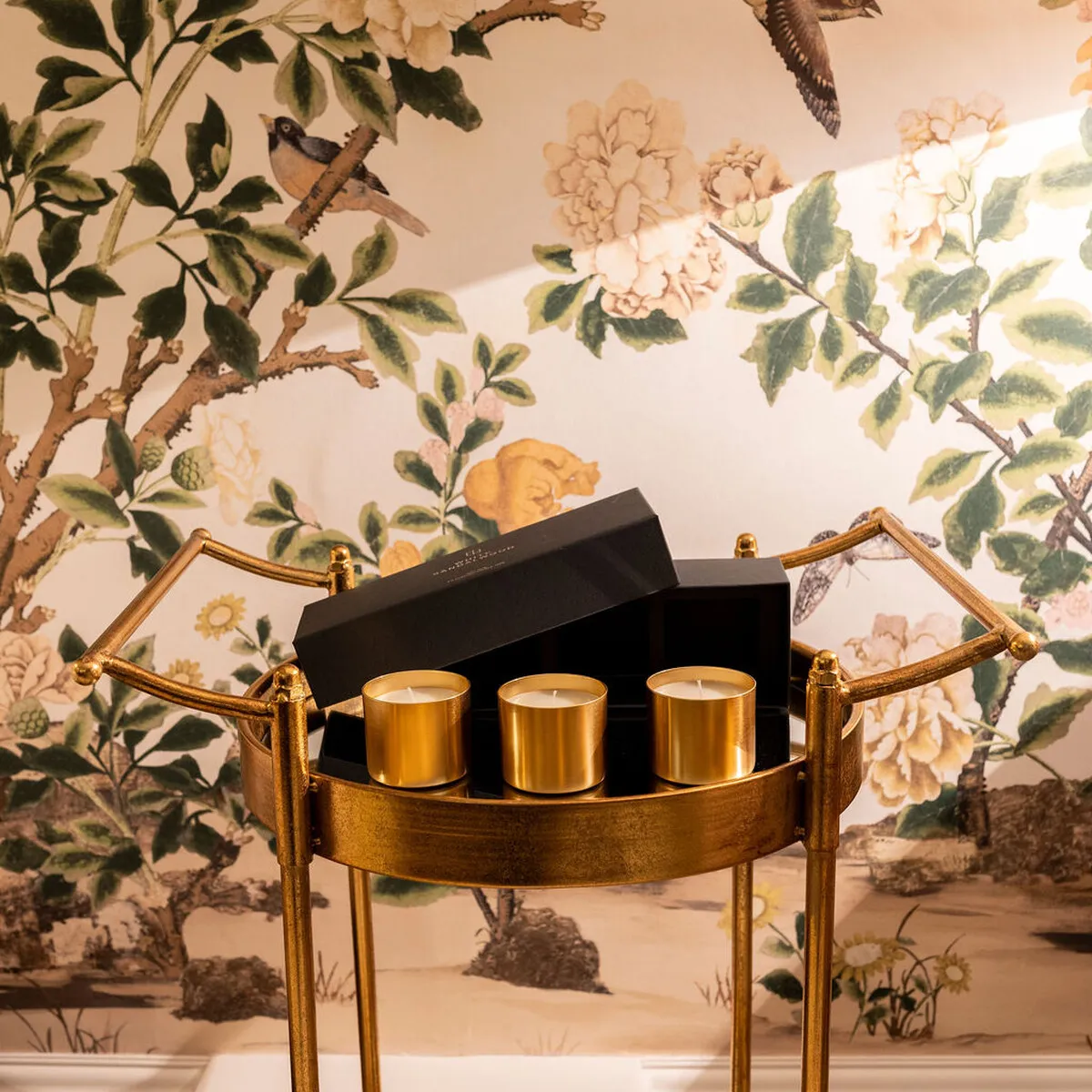With their aged brass containers and seasonal scent, these candles are a real winner your guests will adore. Create the perfect ambience and cosy setting with this warm gold candle trio. They also make the perfect gift as they come beautifully gift boxed