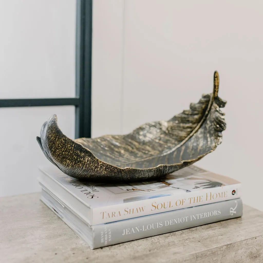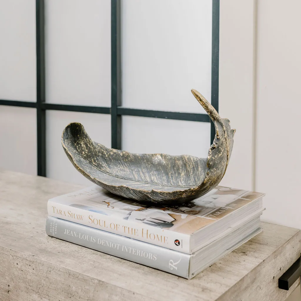 The perfect coffee table dish! With its gently curved shape and antiqued finish, we love this versatile dish styled in a group of objects on a table, console or mantle. Also works beautifully to store or display small objects!