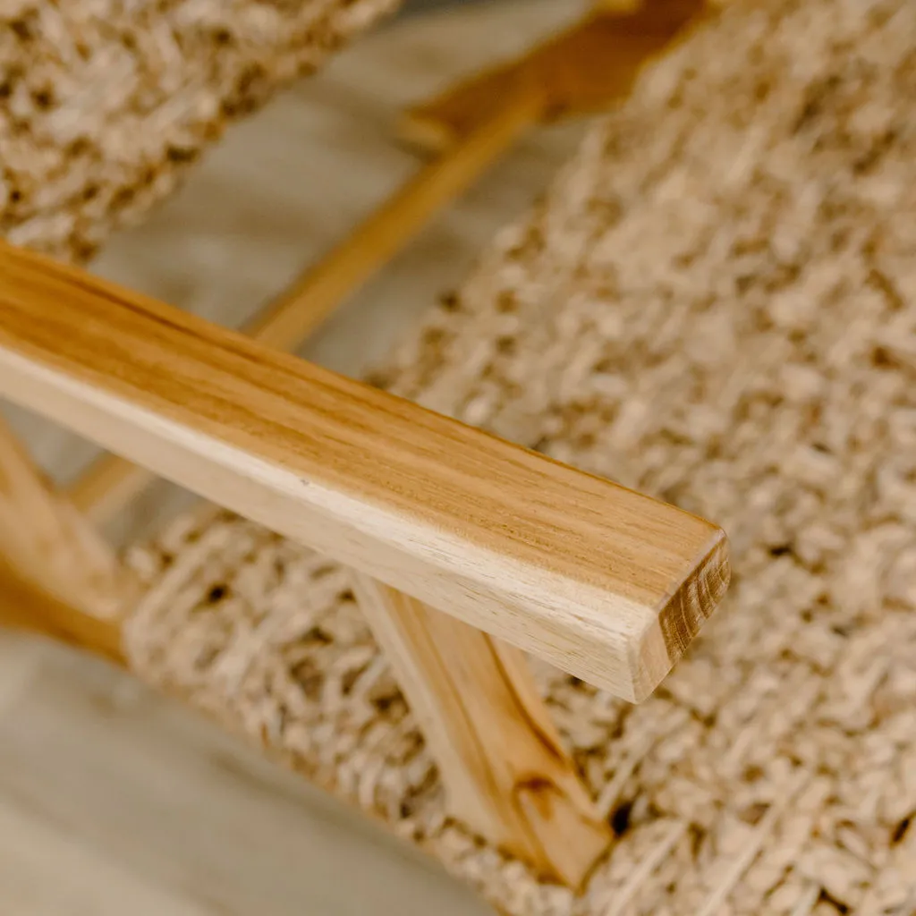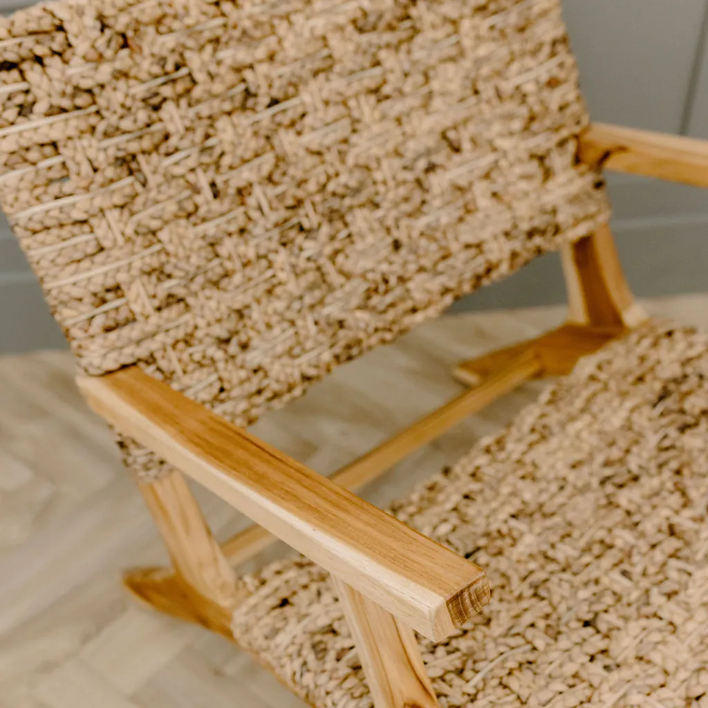 This hand braided and handcrafted accent chair will give you a modern designer look with its organic texture, open natural wood frame and woven upholstery. Stylish yet casual, this chair packs a vibrant punch to your living area